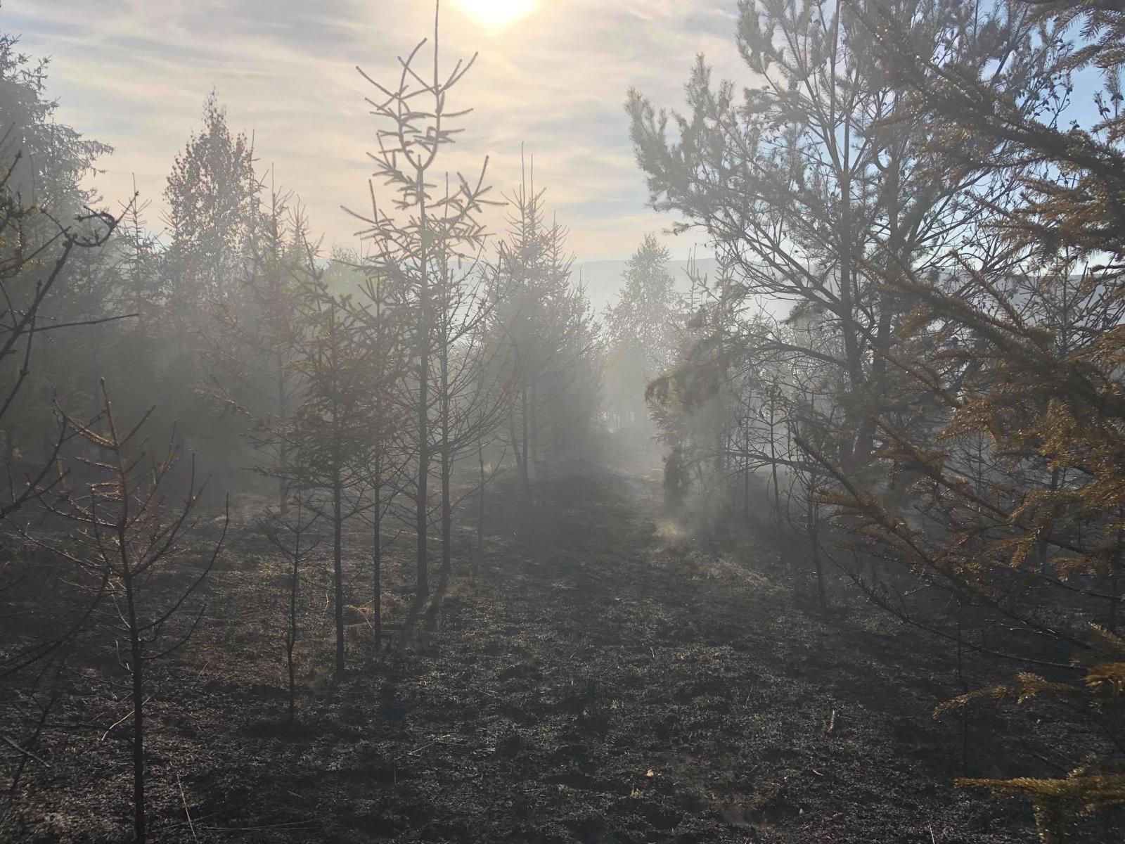 V ranních hodinách několikrát prolili větší doutnající místa či pařezy stromů. Během dne pak proběhlo předání zásahu vlastníkům s nařízením několika hodinového dohledu a dalších bezpečnostních opatření.