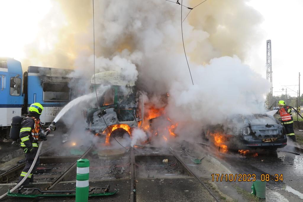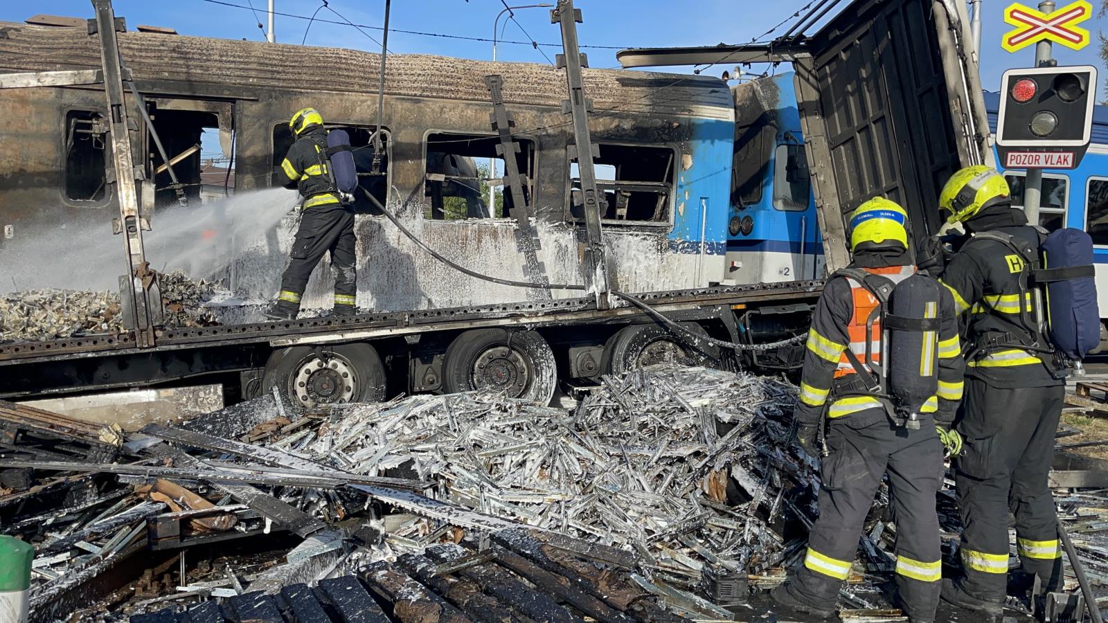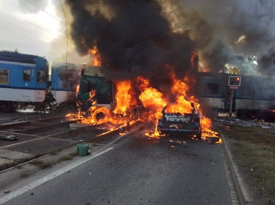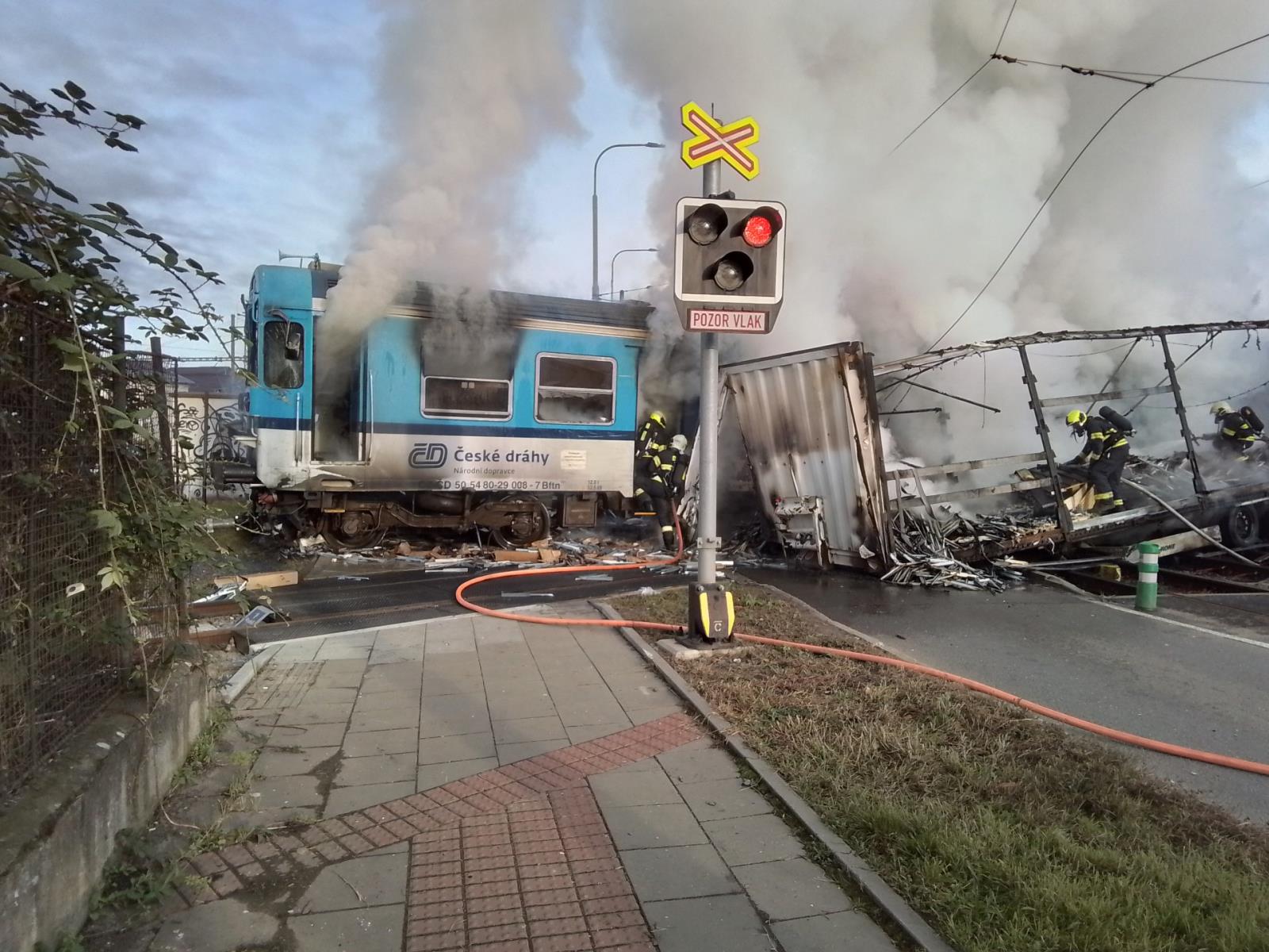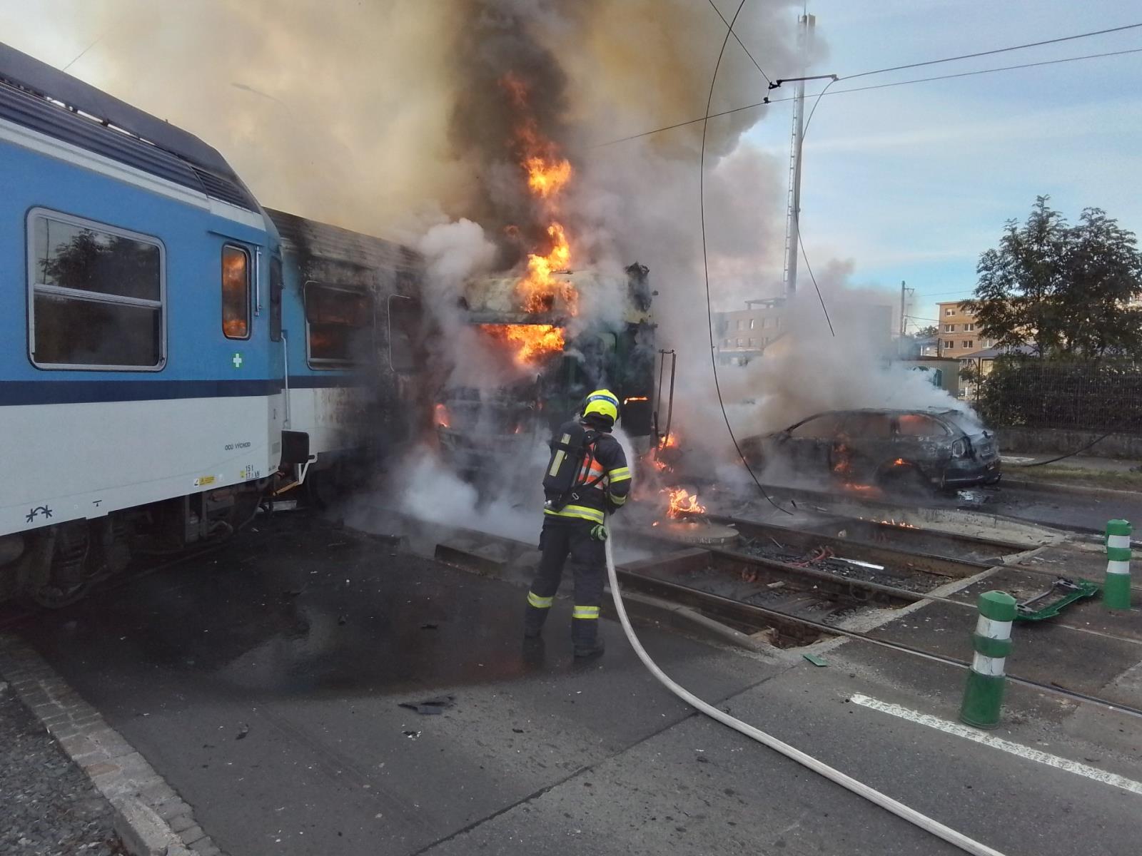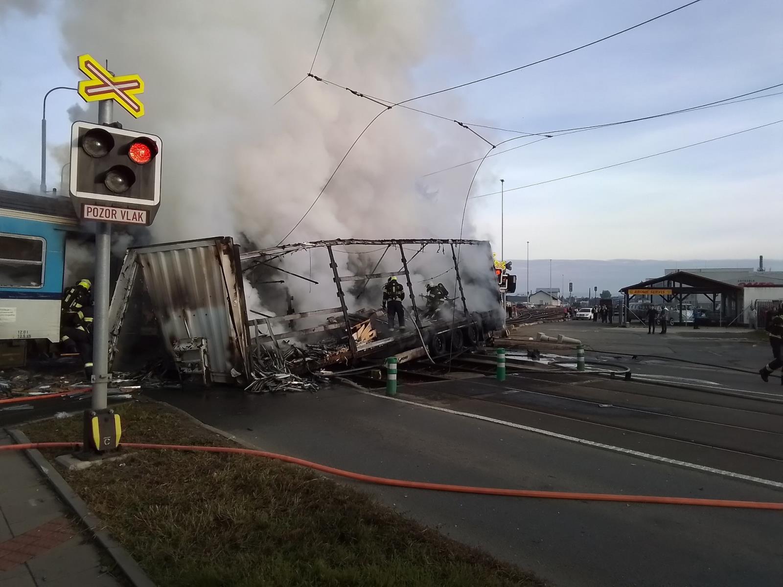 U rozsáhlého požáru osobního vlaku, kamionu a osobního auta hasiči zasahovali v úterý 17. října v Olomouci na železničním přejezdu na Bělidlech. Hlášení o události jsme přijali v 8:22 minut na krajské operační a informační středisko s tím, že všechna tři vozidla po dopravní nehodě vzplála. Rychlé rozšíření plamenů způsobilo proražení palivové nádrže vlakové soupravy.