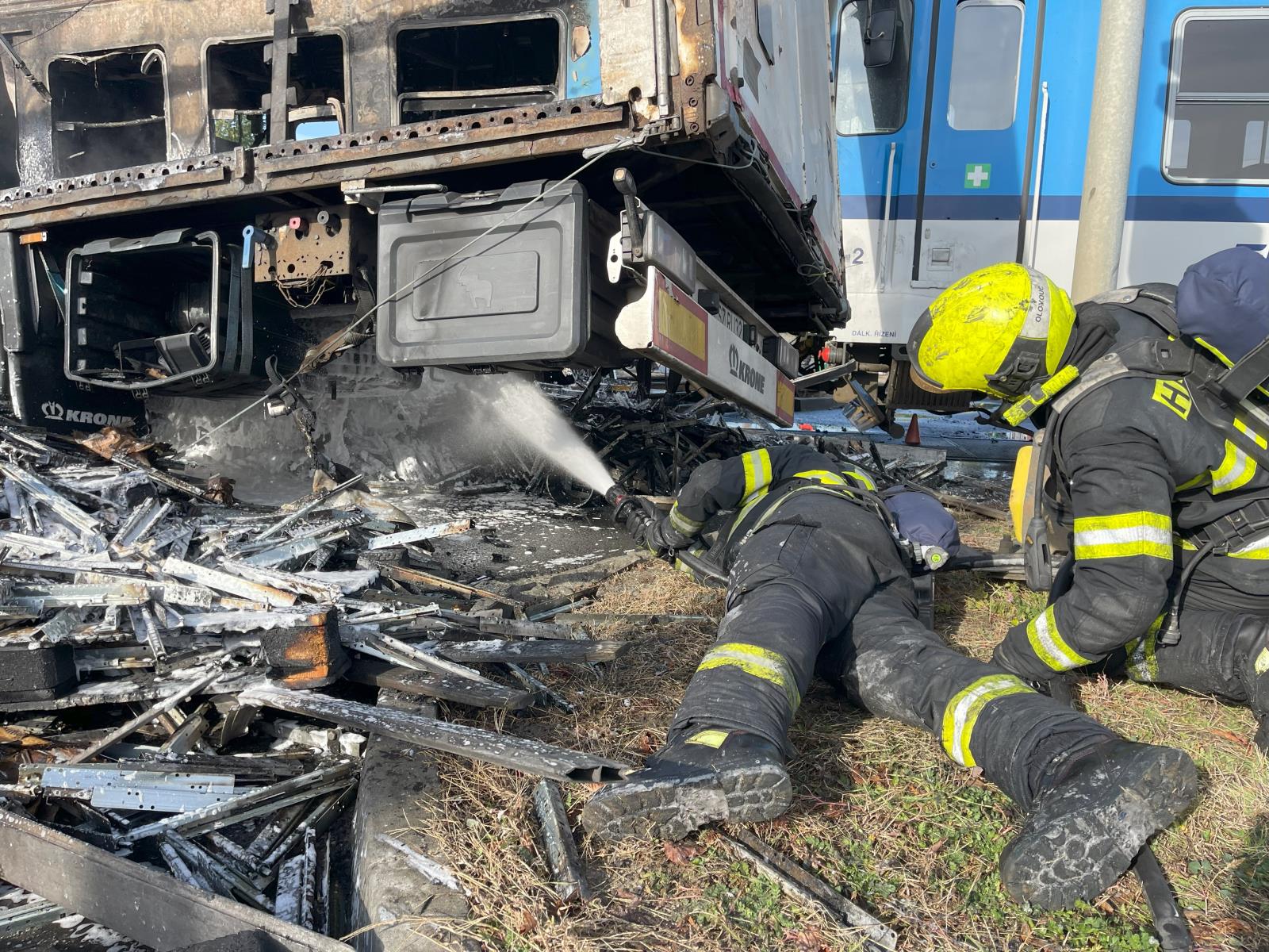 Po našem příjezdu na místo události již bylo asi 30 cestujících z hořícího vagónu evakuováno. Ihned jsme zahájili hasební práce. Souběžně jsme poskytli první pomoc pěti osobám, následně jsme je předali do péče zdravotnické záchranné služby.