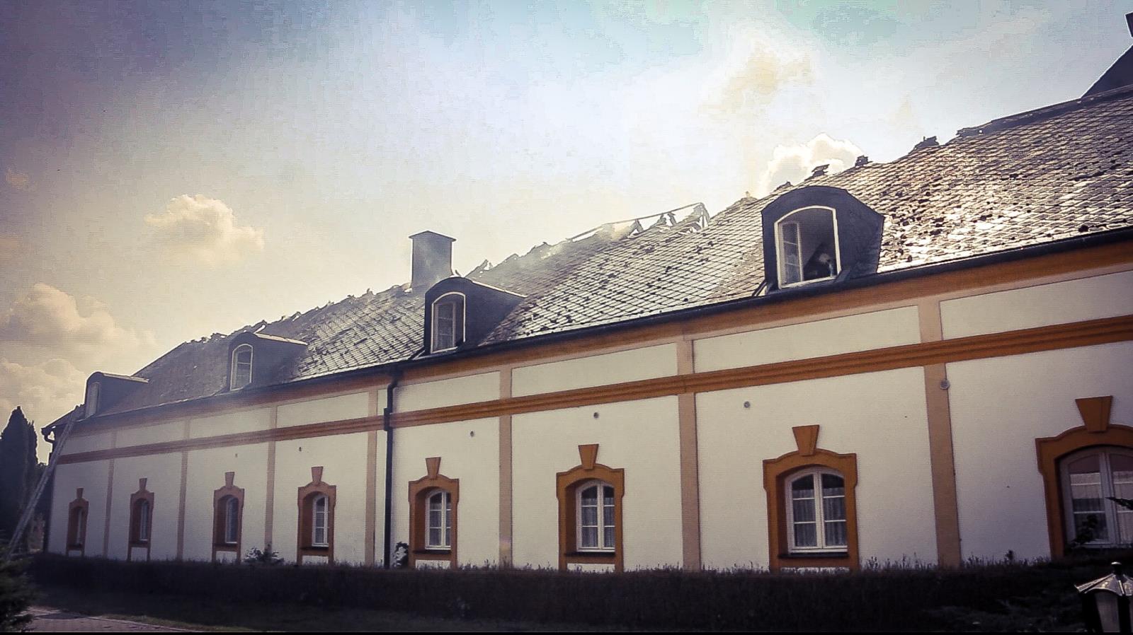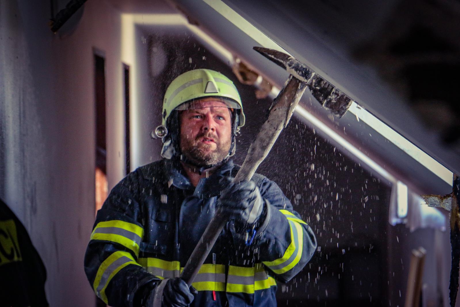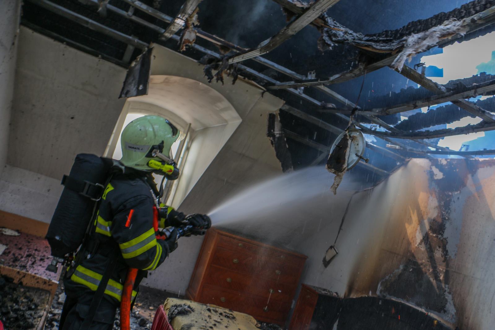 Hasiči po příjezdu potvrdili rozšíření na celkovou plochu střechy a to zhruba na 10 x 45 metrů. Situaci komplikovalo sádrokartonové obložení ve všech požárem zasažených podkrovních místnostech.