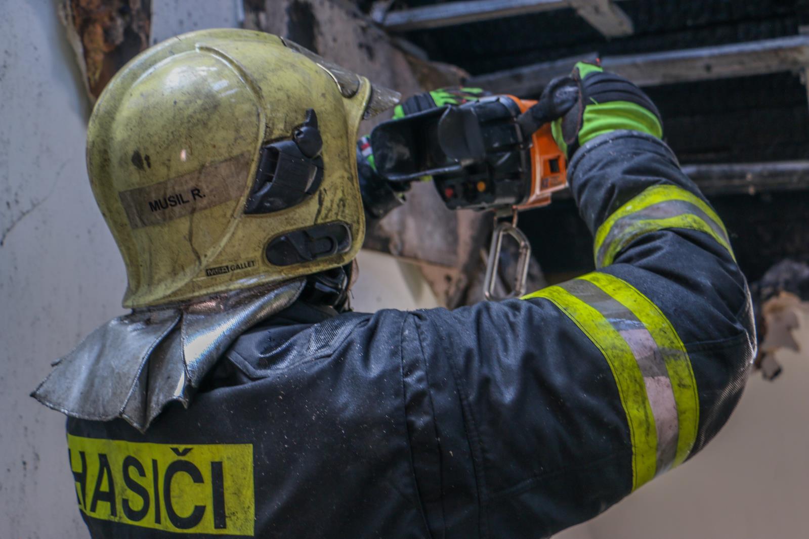 odkrytím střešní krytiny pomáhají vozidla výškové techniky. Společně s jednotkami profesionálních stanic Šternberk, Uničov a Olomouc na místě zasahují také dobrovolní hasiči Babice, Bohuňovice, Hnojice, Liboš a Uničov. V následujících dalších několika hodinách budou hasiči provádět vynášení požárem poškozeného vybavení a rozebírat podkrovní část objektu.