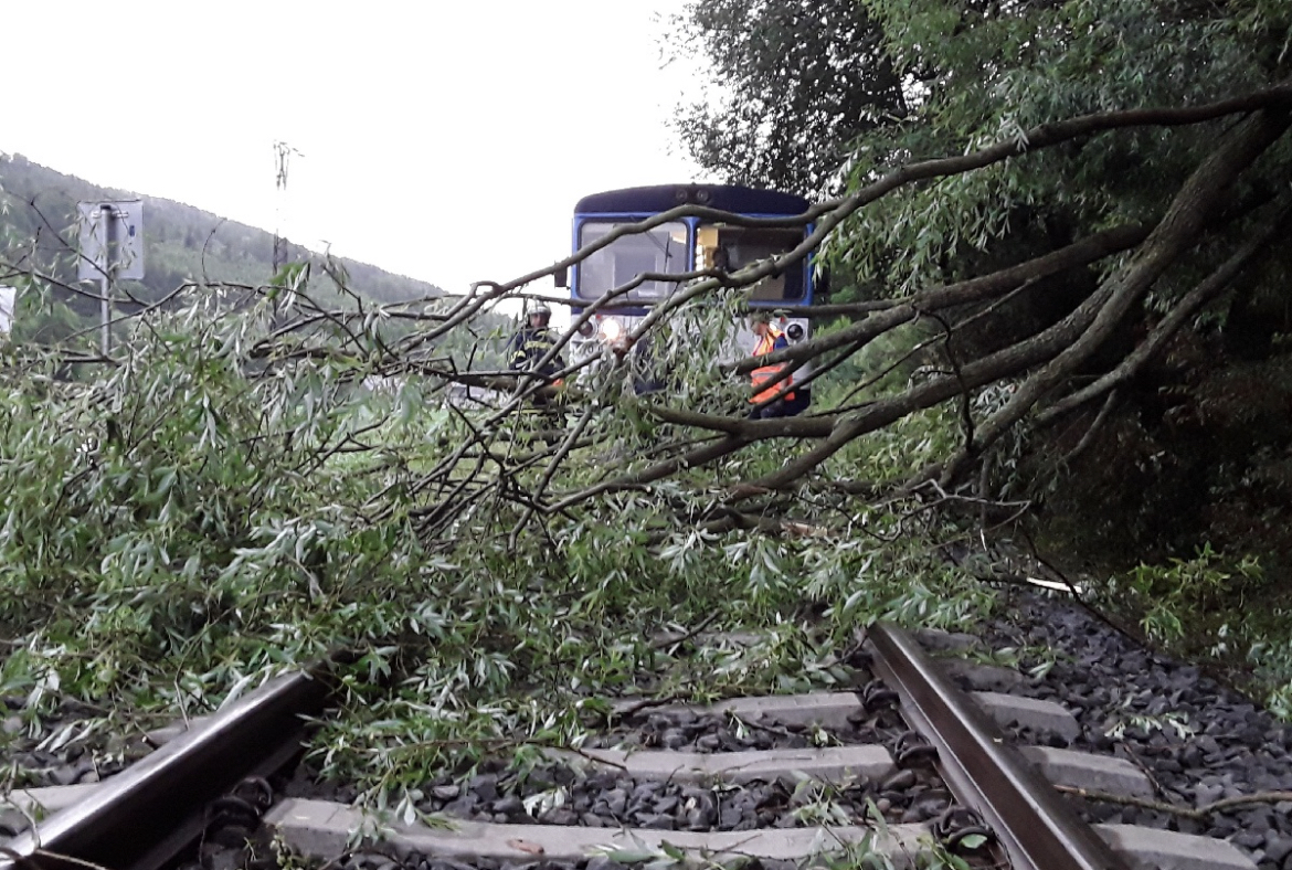 ZOČ - kontrola poškozeného sběrače u tratě. |