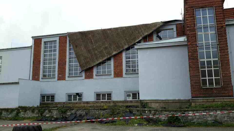Střešní plechové tabule zajišťovala také profesionální jednotka na ulici Lafayettova v bývalém pivovaru.