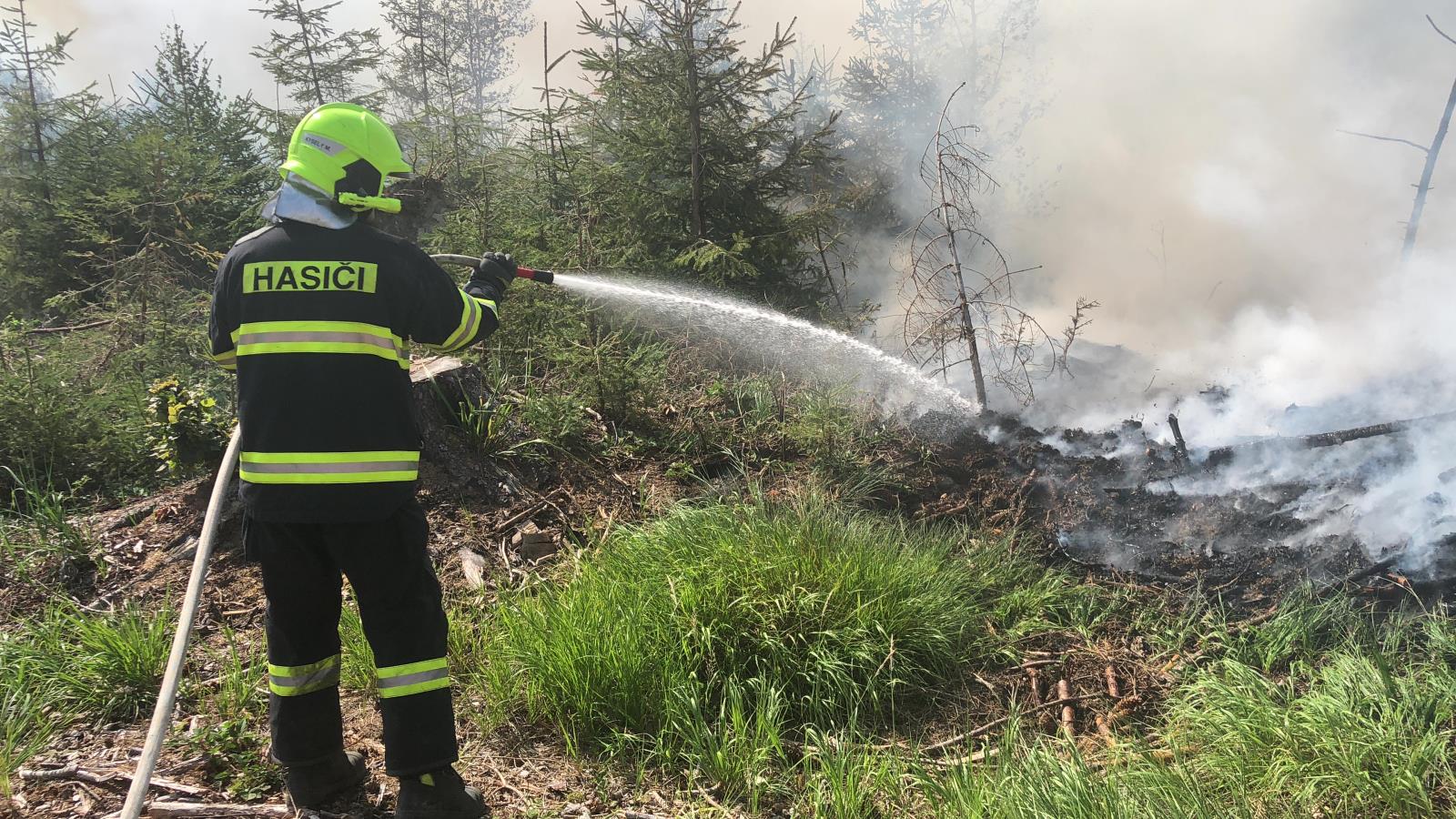 K místu postupně dorazilo sedm hasičských jednotek. Plocha požáru nebyla velkého rozsahu, zhruba 50x20 metrů po lokalizaci, nicméně zcela zaplněná velkými hromadami klestu navíc po dřívější větrné smršti s vyvrácenými pařezy a hustě prorostlé hrabankou. Situaci nepříjemně stěžoval silnější vítr, plameny se tak velmi rychle přibližovaly k nedalekému vzrostlému lesu.