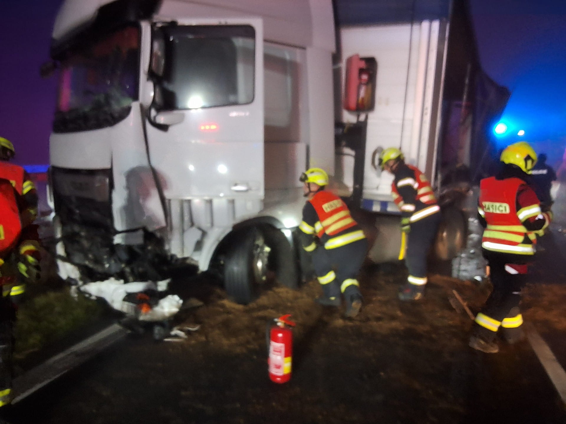 K nejvážnější nehodě došlo na bypassu u Globusu, kde se srazila dvě nákladní auta, dodávka a osobní vozidlo. Náraz byl tak silný, že z dodávky nebylo možné dostat posádku standardním způsobem. Hasiči proto použili hydraulické rozpínáky a další nástroje, aby otevřeli dveře a zraněné vyprostili na páteřní desce. Oba předali do péče záchranářů.