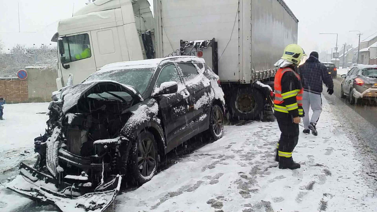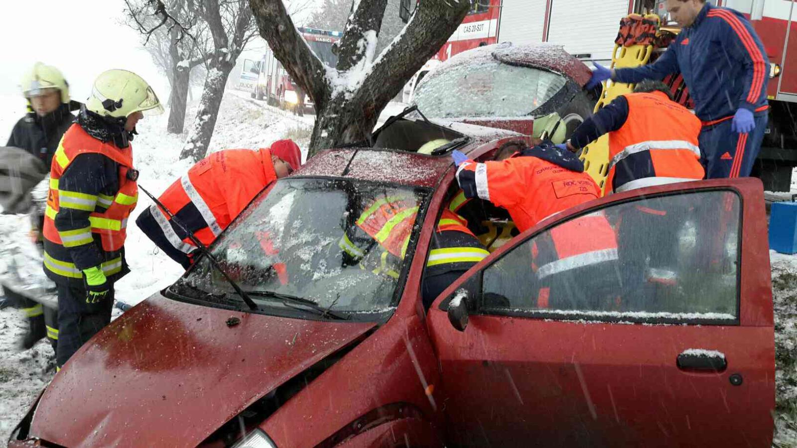 Silné sněžení a dopravní nehody zaměstnaly hasiče v Olomouckém kraji