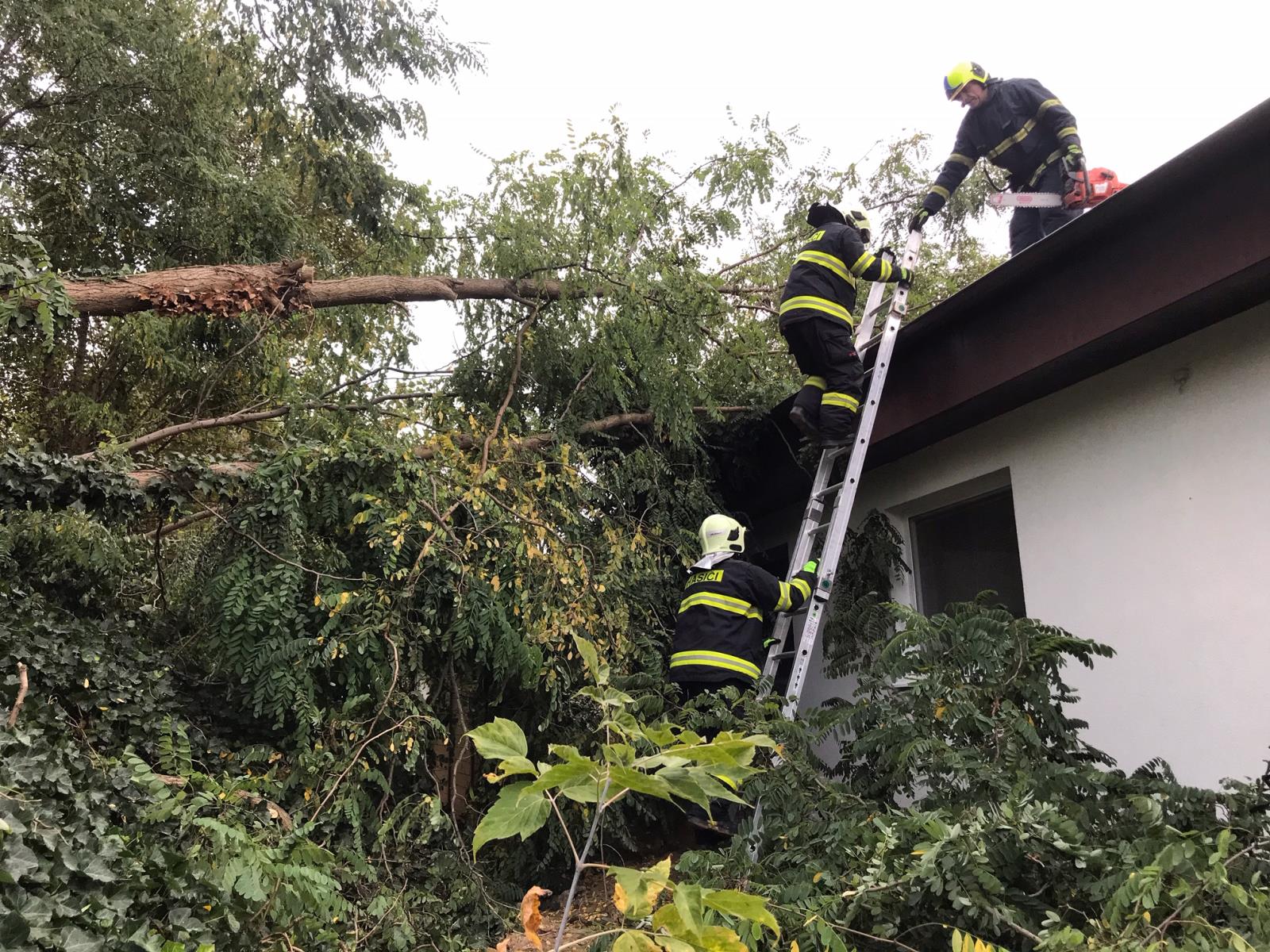 Hasiči vyjíždějí hlavně k popadaným stromům na komunikacích či v kolejišti a k utrženým částem střech. Zasahovali jsme například v Tovačově, kde vítr strhl plechovou střechu, a hrozilo, že spadne na frekventovanou komunikaci. Hasiči ji pomocí lan vrátili zpět na místo a zajistili dřevěnými latěmi. Zásah komplikoval právě silný vichr. Využili jsme také výškovou techniku. Na místě spolupracovali profesionálové z Kojetína a jednotka dobrovolných hasičů z Tovačova. V České Vsi na Jesenicku odstraňovala jednotka strom, který spadl na dráty elektrického vedení a ve Stražisku na Konicku řešili hasiči strom v kolejišti.