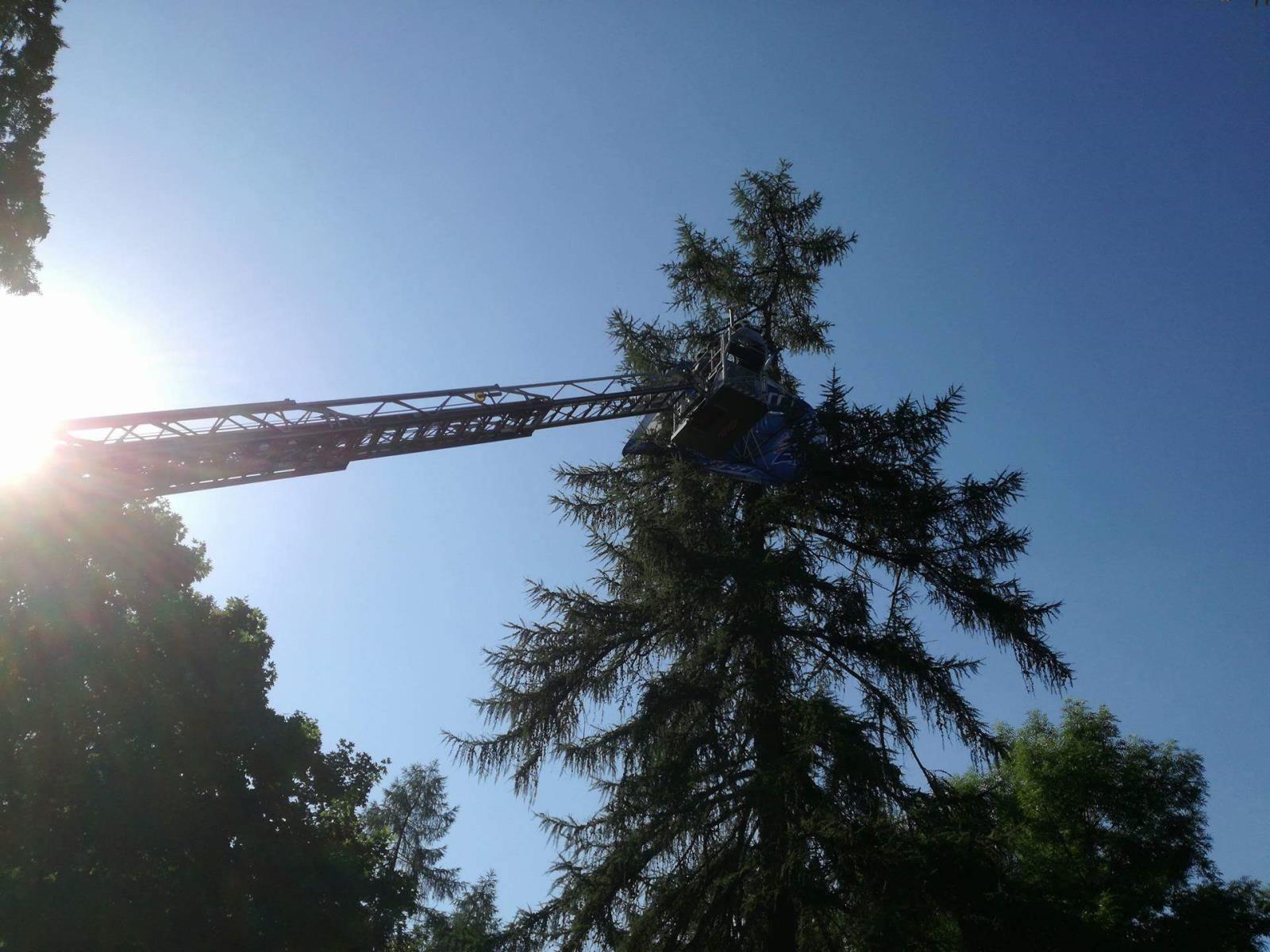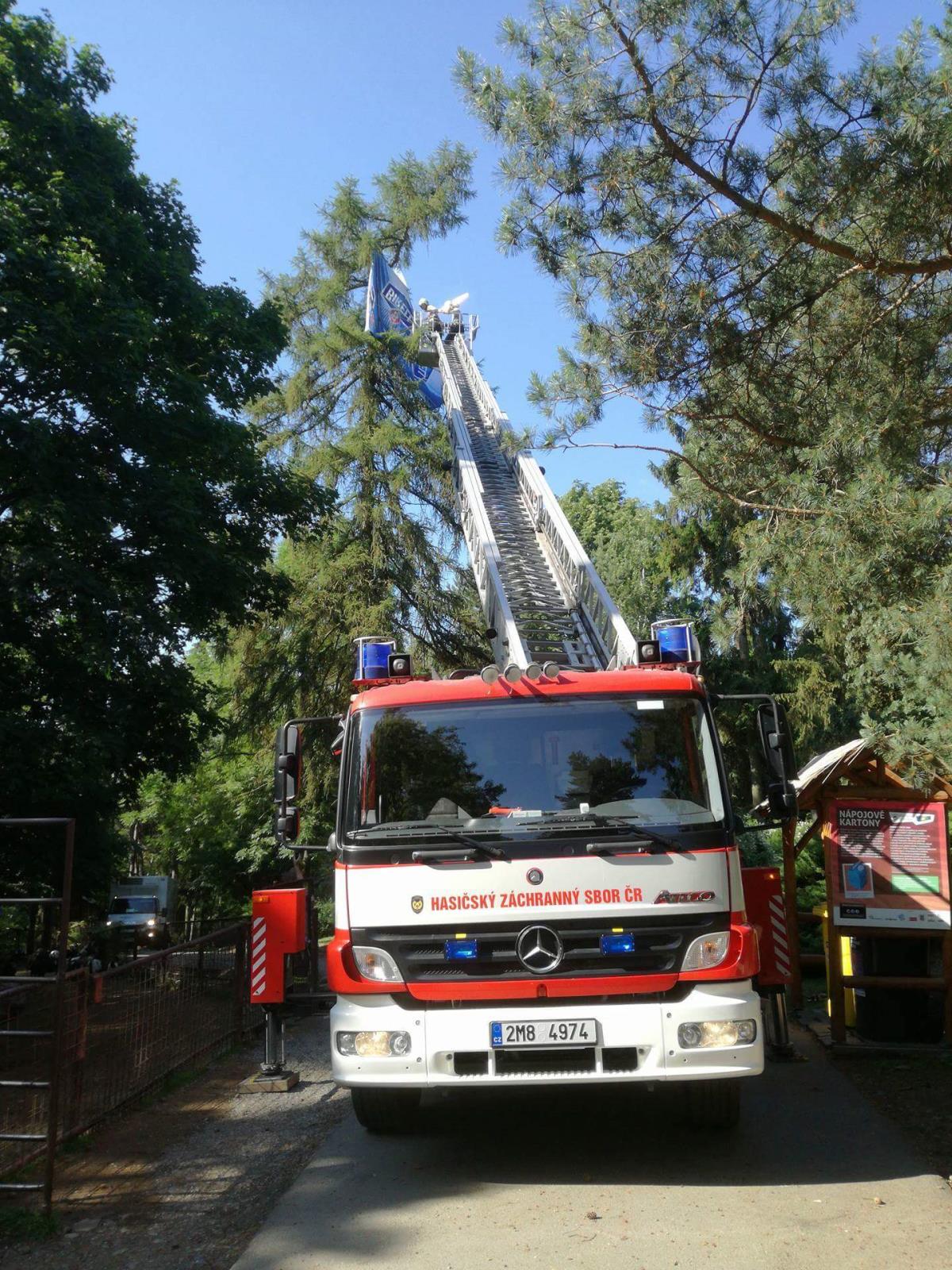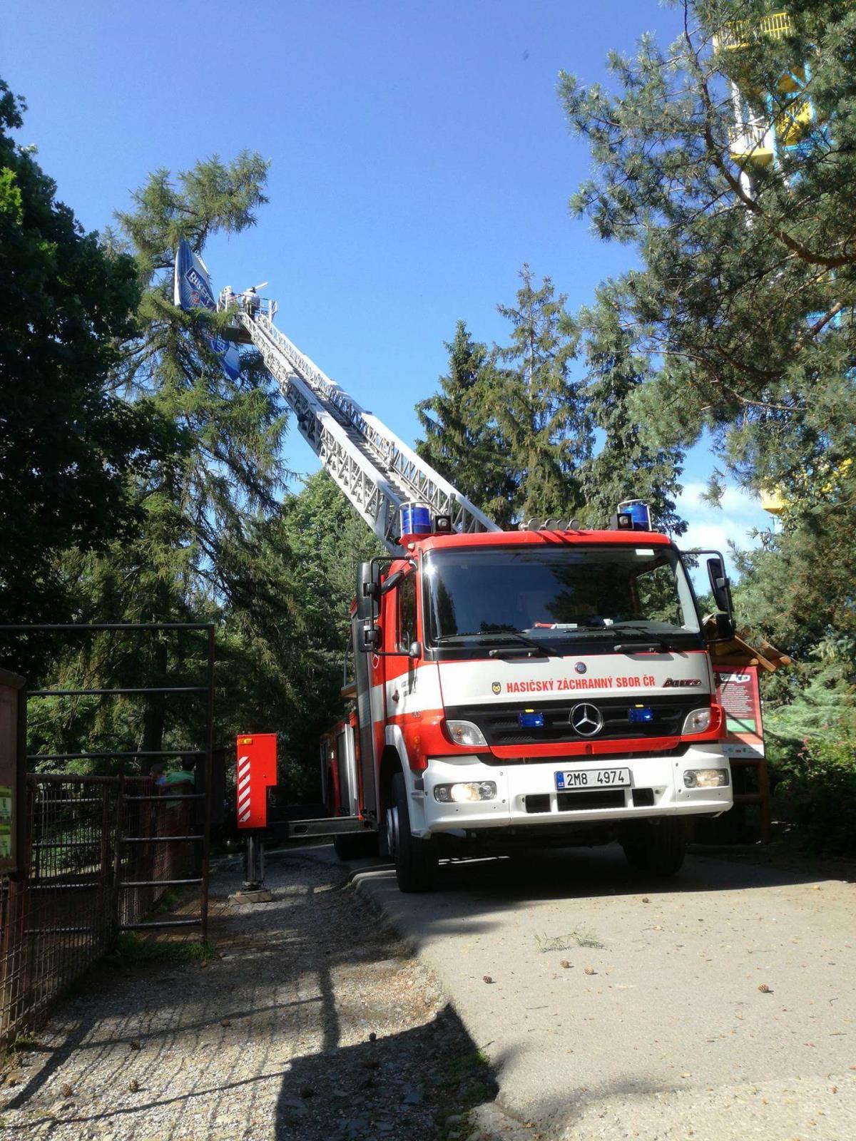 Hasiči na místo vyjeli nejprve jen s cisternou. Zjistili však, že slunečník je příliš vysoko, proto na místo vyjela i výšková technika. Teprve pomocí ní se hasičům podařilo slunečník z koruny vzrostlého jehličnanu z výšky asi 10 m sundat. Zásah hasiči po necelé hodině ukončili. Nikdo se při něm nezranil.