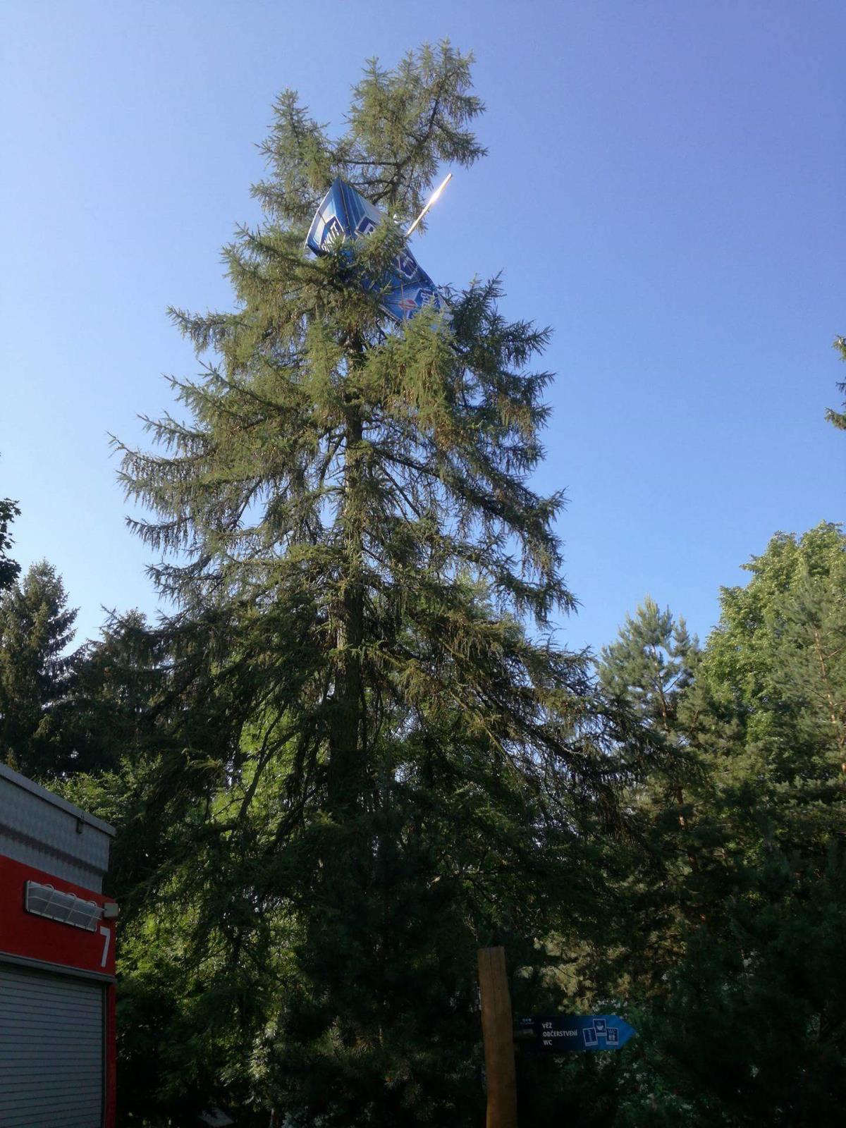 Slunečník skončil v koruně stromu