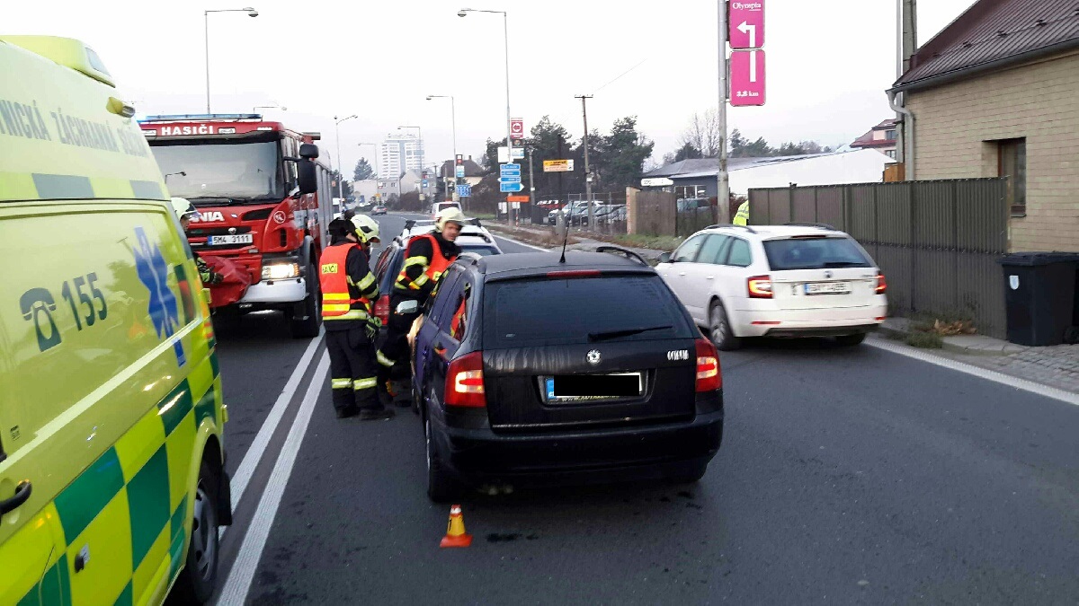 Tři osobní vozidla se srazila po 7. hodině ráno také v Lipenské ulici v Olomouci, při nehodě se zranila jedna osoba, kterou hasiči předali do péče zdravotnické záchranné službě. Provedli protipožární opatření, vozidla odtáhli mimo komunikaci a vozovku uklidili. Po dobu zásahu byla doprava omezena.