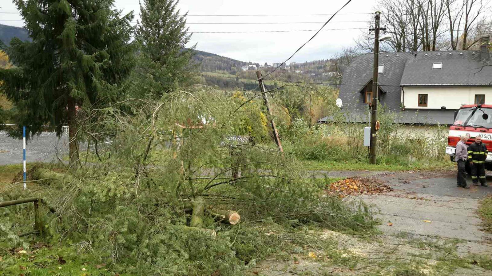 TP/ONS 29.10.2017 09:15:42 Jeseník, Stará Červená Voda Stará Červená Voda - H Strom přes silnici