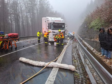 Hasiči při prvotním průzkumu zjistili únik provozních kapalin z havarovaných vozidel. Tyto látky představují nejen ekologické riziko, ale i nebezpečí vzniku požáru. Jednotky proto místo okamžitě zabezpečily sorbenty a provedly nezbytná opatření proti vznícení.
