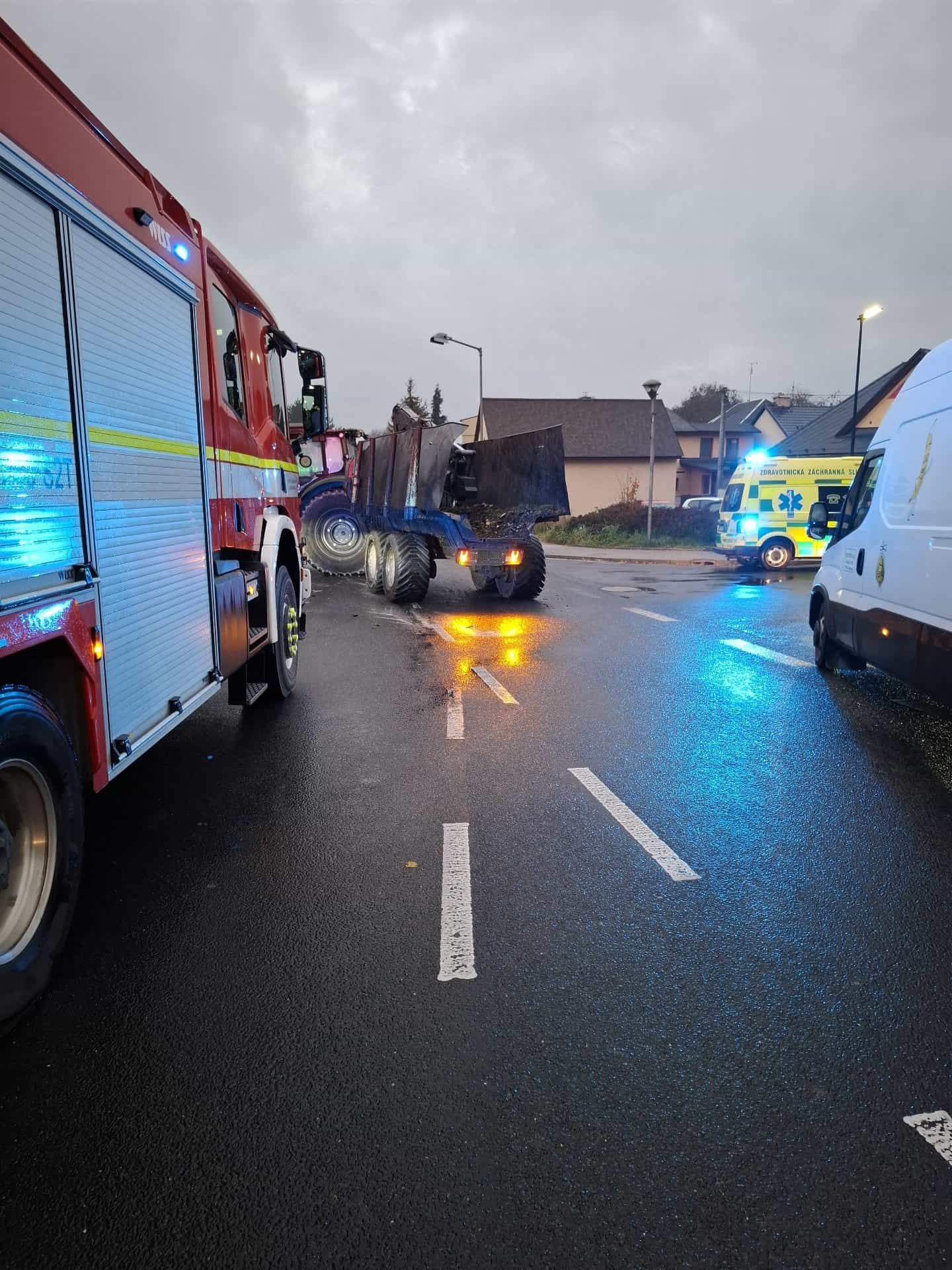 Srážka traktoru s autem: Řidičku museli hasiči vyprostit