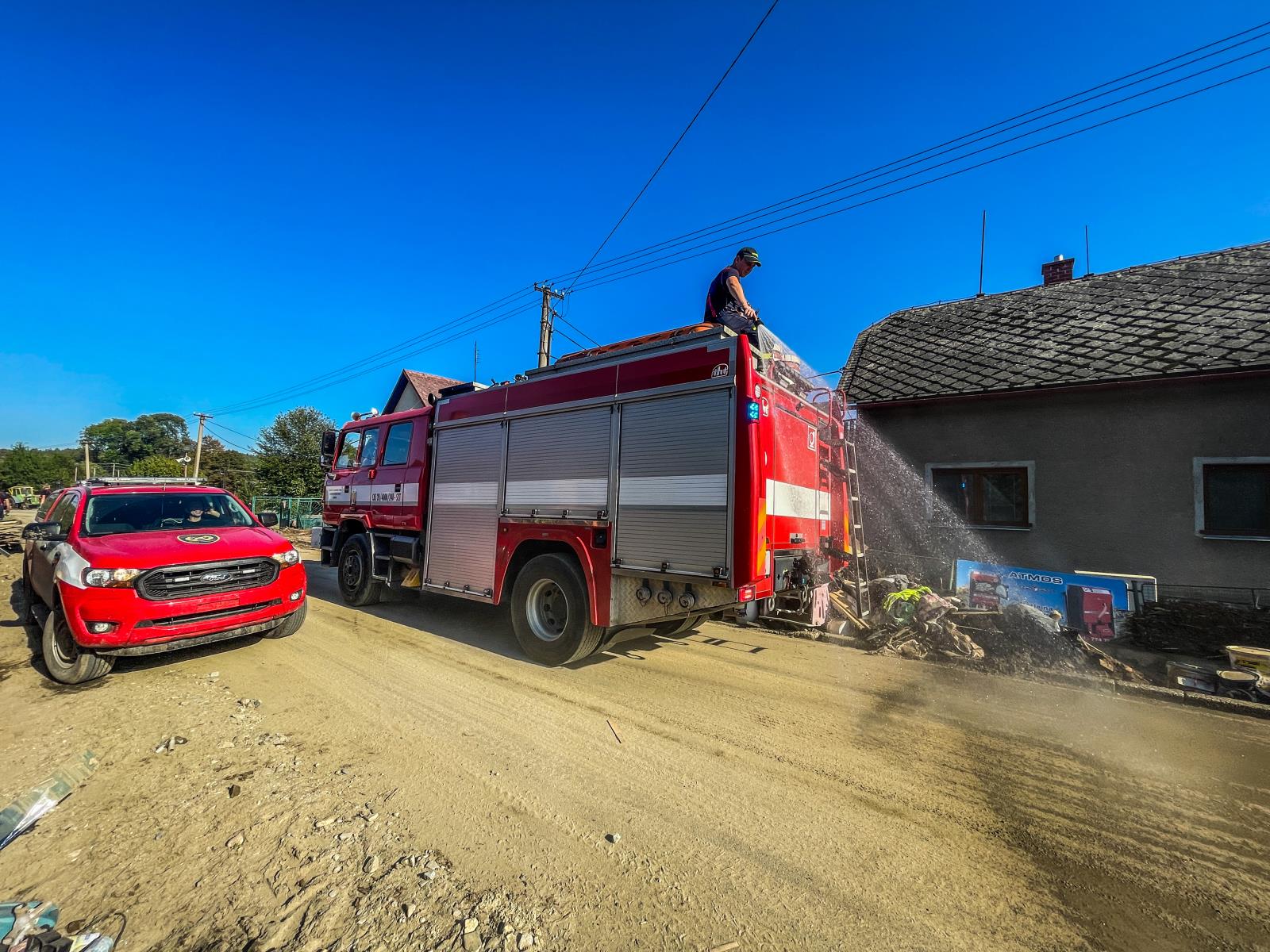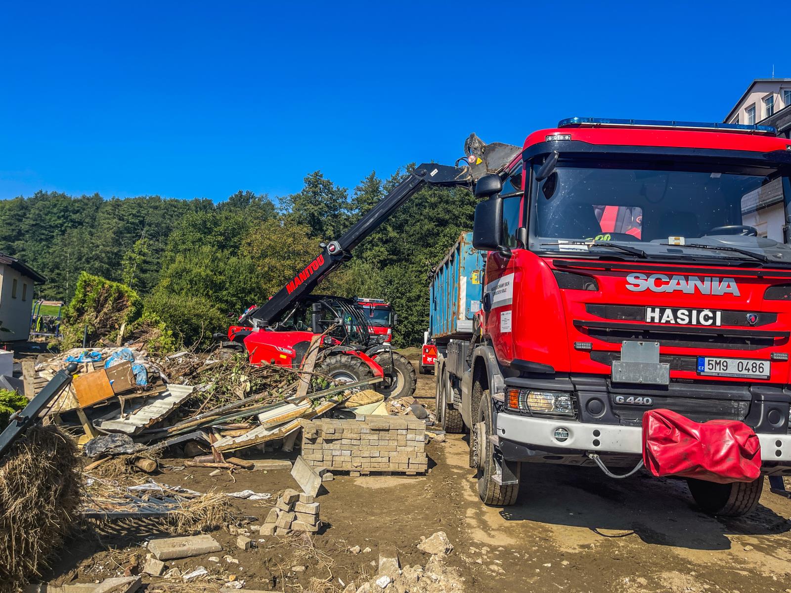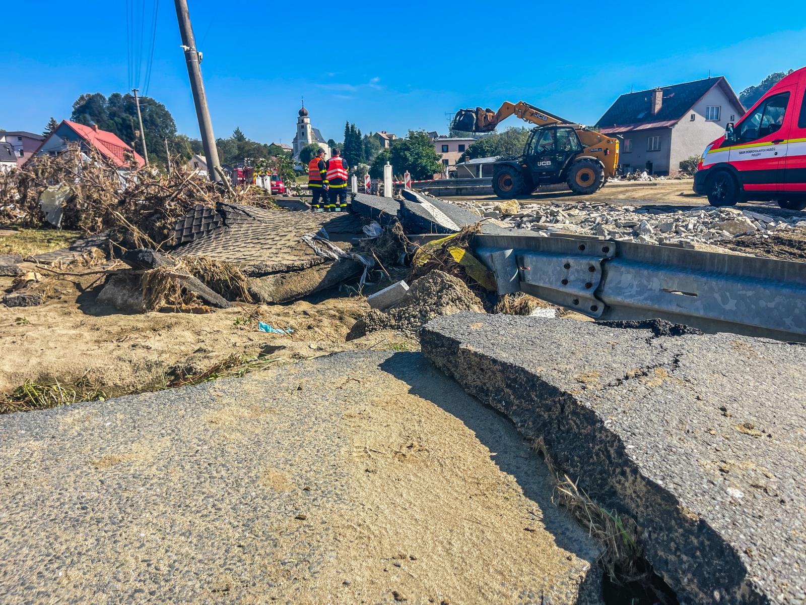 Postupně obnovujeme území. Odčerpali jsme například vodu ze zatopené školky ve Velké Kraši, s těžkou technikou jsme na některých místech již vrátili řeku Bělou zpět do svého koryta a zpevnili jsme břehy. V Bělé pod Pradědem jsme využili sací bagr pro odstranění největších nečistot a bláta z některých domů. V okolí Vidnavy se již likvidují poškozené věci a odvážejí se na skládku. Jde o tuny materiálu, zajišťujeme jeho nakládku a odvoz. Na mnoha místech se podařilo provizorně opravit silnice. Od pátku platí omezení dopravy v zasaženém území.