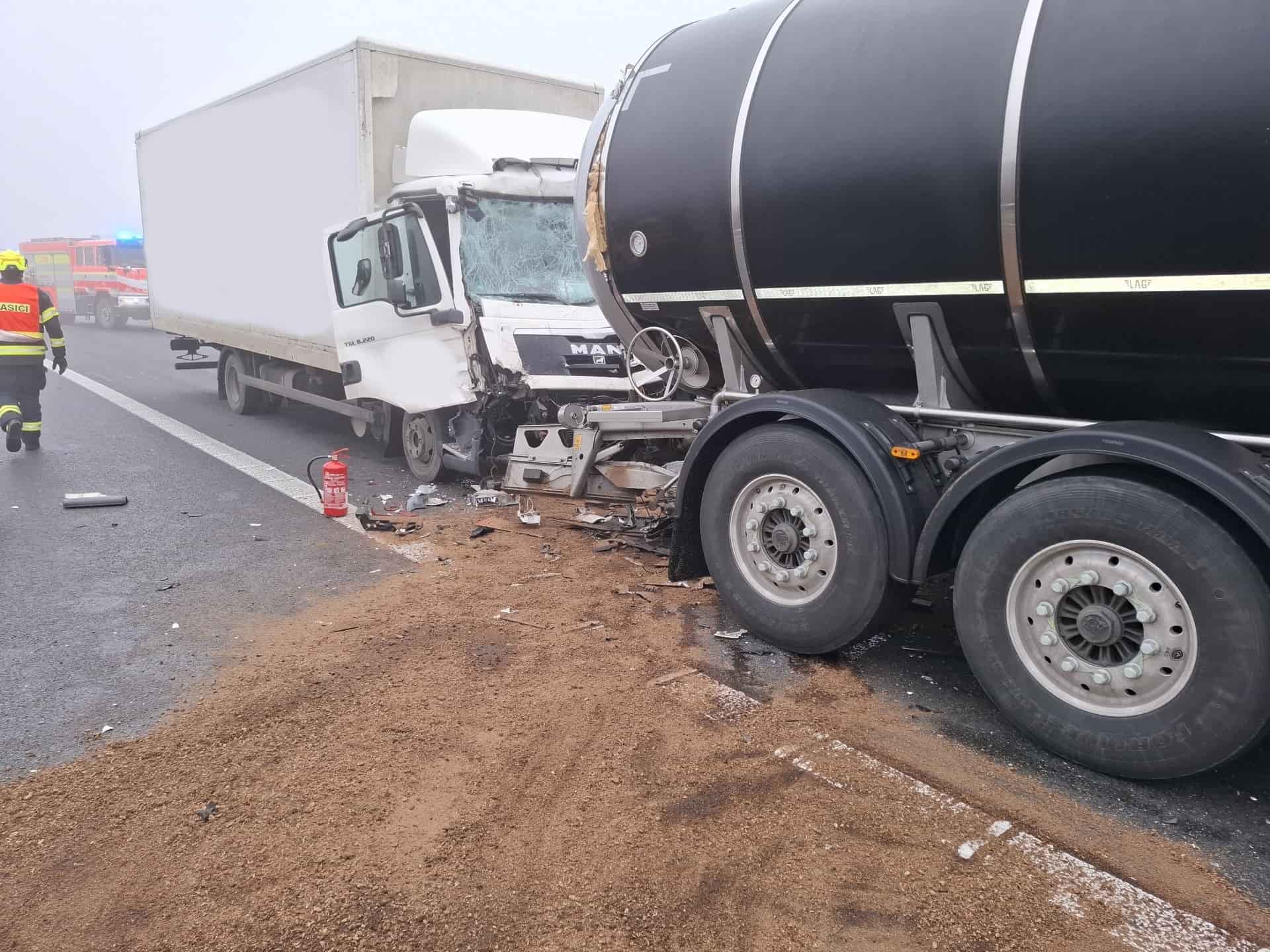 Náraz dvou těžkých vozidel zastavil provoz a přivolal složky IZS