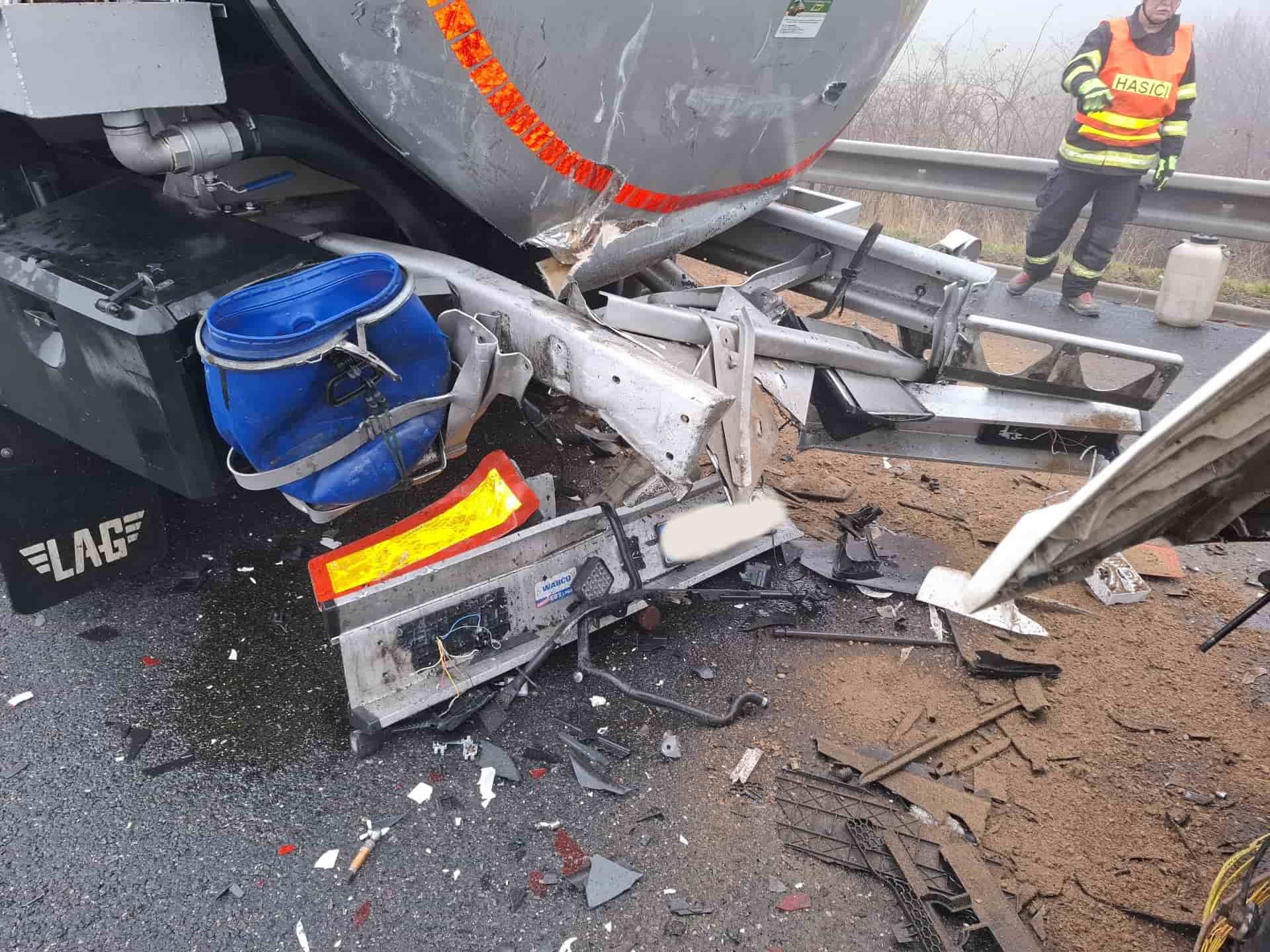 Hasiči místo nehody zajistili tak, aby nedošlo k dalšímu ohrožení řidičů v provozu. Součástí zásahu bylo také zabezpečení obou vozidel proti vzniku požáru. Nákladní automobily mohou po střetu ztrácet provozní kapaliny, které ohrožují životní prostředí i bezpečnost silniční dopravy. Na místě proto proběhlo utěsnění unikajících látek a jejich následný úklid. Policie České republiky provedla dokumentaci nehody a zahájila šetření příčin a okolností střetu.