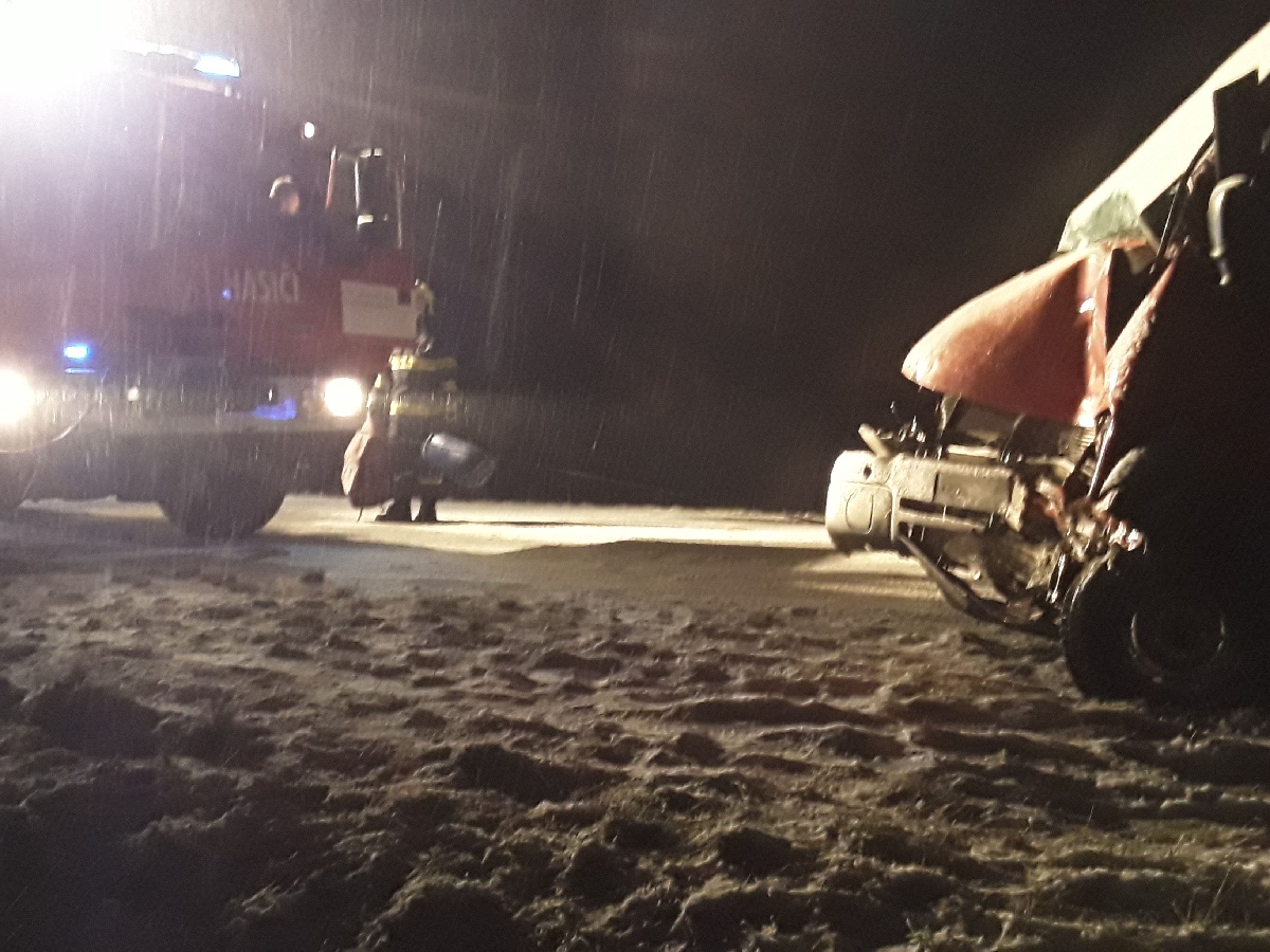 Jednotky od železniční nehody přejely z Bohdíkova k Raškovu, kde se o půl šesté srazila dodávka s autobusem. Zranily se 2 osoby z dodávky, osmi cestujícím v autobuse se nic nestalo. Silnice na Hanušovice byla kvůli havarovaným vozidlům, které blokovaly komunikaci, neprůjezdná. Poskytli jsme první pomoc zraněným, předali jsme je do péče záchranářům a zajistili jsme místo nehody proti vzniku požáru, postarali jsme se také o uniklé provozní kapaliny. Havarovanou dodávku jsme pomocí navijáku odtáhli mimo komunikaci. Zasahovala profesionální jednotka ze stanice Šumperk a jednotka SDH Ruda nad Moravou.