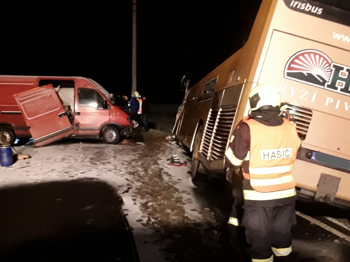 Zásah u nehody autobusu a dodávky mezi Bohdíkovem a Raškovem