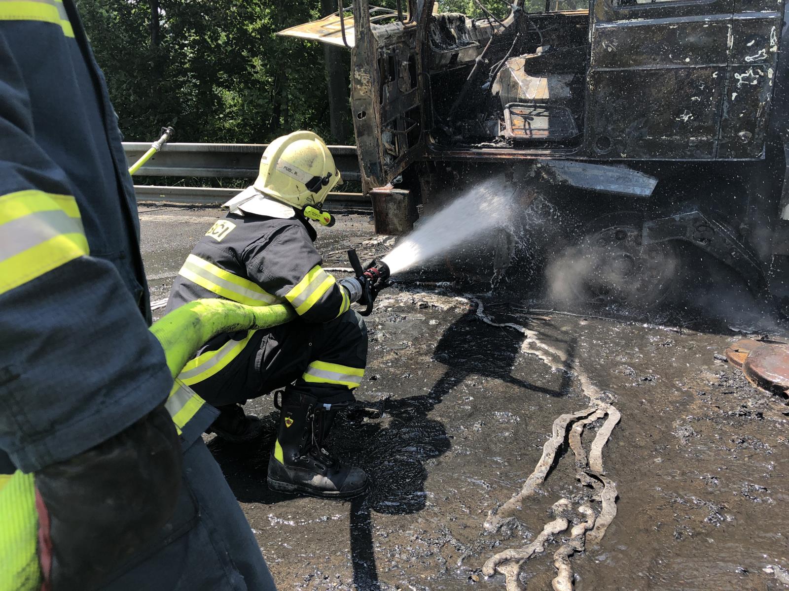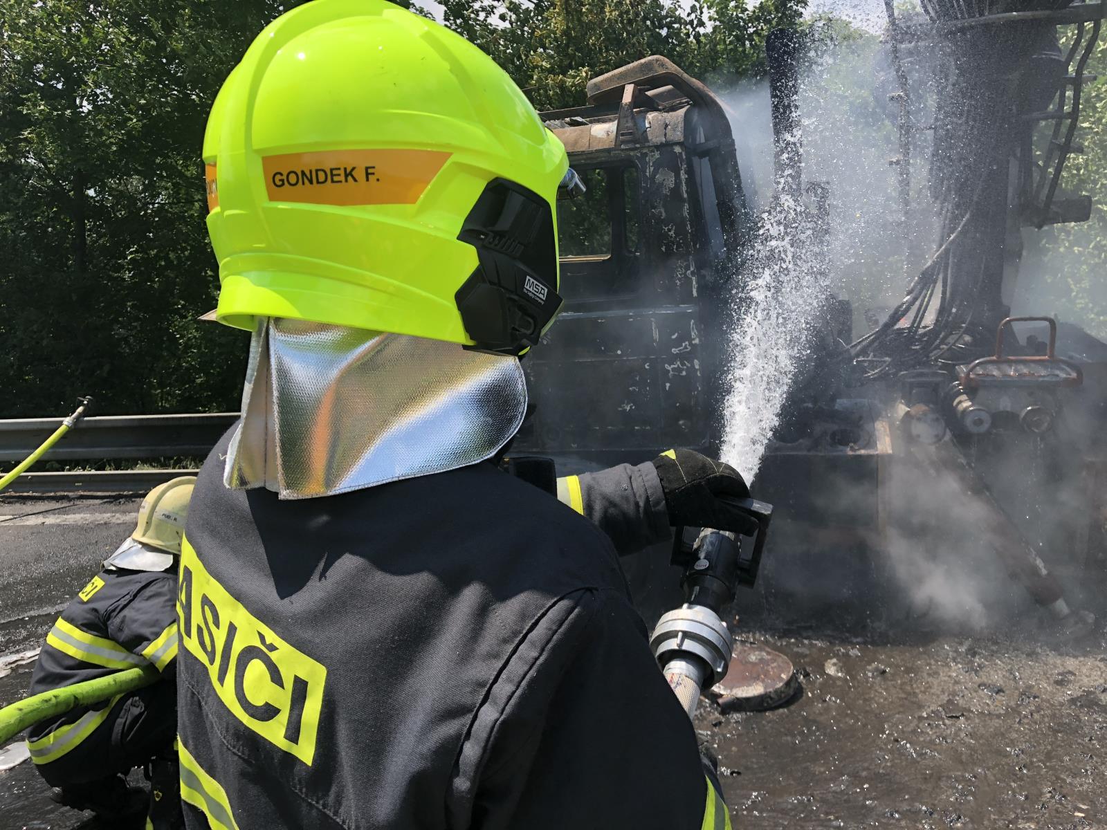 Při dopravní nehodě došlo ke smrtelnému zranění motocyklisty, řidič nákladního vozidla se včas dostal do bezpečí. Hasiči zhruba po půl hodině požár lokalizovali a v navazujícím čase pokračovali v ochlazování a zabezpečení po úniku provozních kapalin.