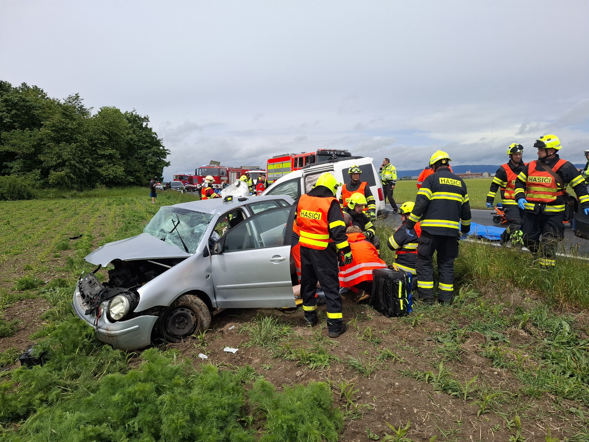 Krátce po deváté hodině ranní došlo k čelnímu střetu dvou osobních vozidel. V jednom z nich cestovala rodina s dětmi. Náraz byl natolik silný, že došlo k deformaci karoserií, což znemožnilo okamžitý přístup k některým cestujícím. Hasiči z profesionálních jednotek v Uničově a Litovli, spolu s dobrovolnými hasiči z Pňovic a Tří Dvorů, vyrazili na místo prakticky ihned po nahlášení události.