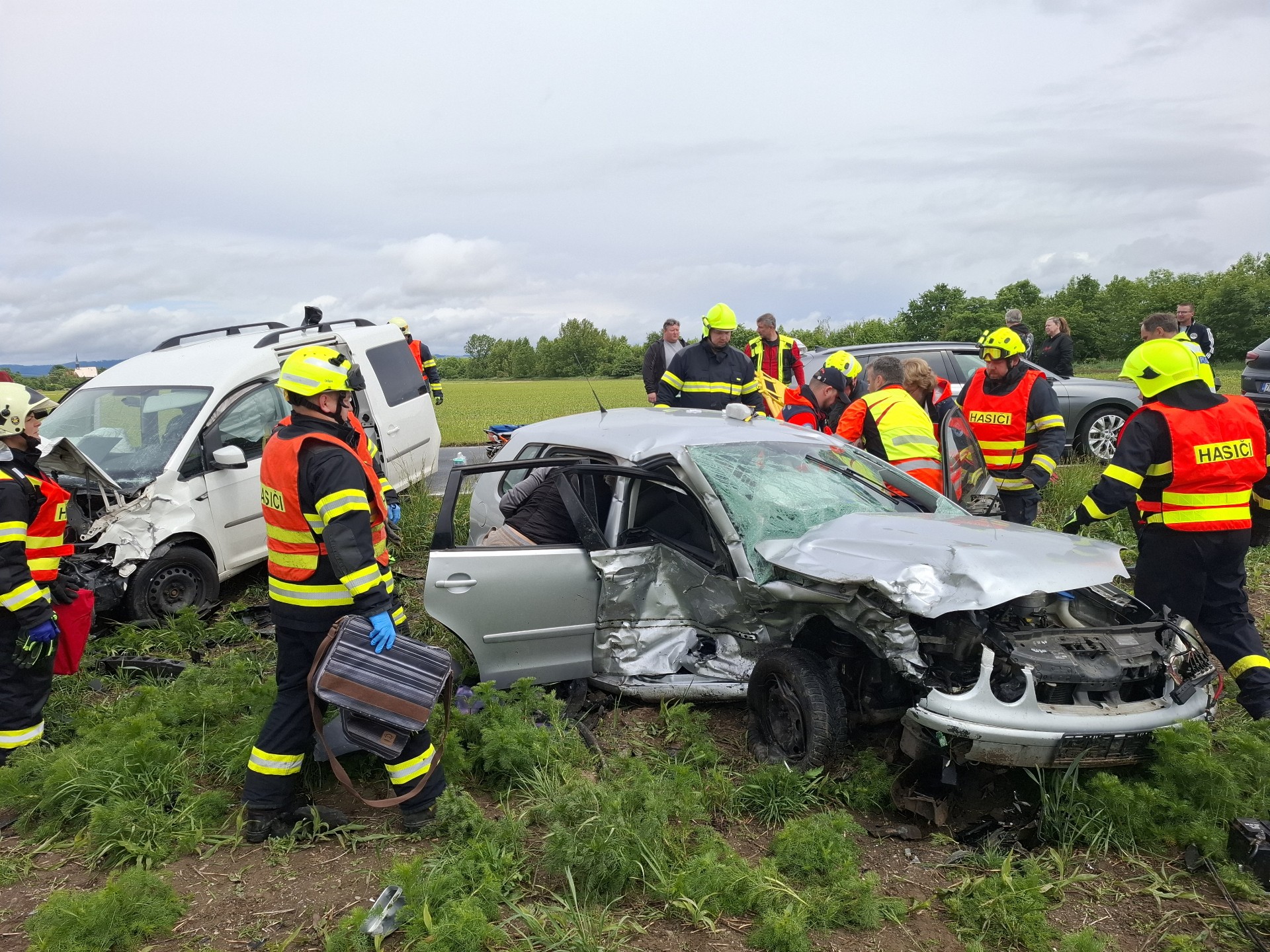 Nejtěžší úkol čekal na hasiče u jednoho z vozidel, kde zůstala zaklíněna řidička. Pomocí hydraulických nástrojů a za asistence zdravotníků ji opatrně vyprostili na páteřní desce, aby nedošlo k dalšímu poranění páteře či vnitřních orgánů. Všichni účastníci nehody byli na místě ošetřeni zdravotnickou záchrannou službou, včetně letecké záchranky, která přistála poblíž nehody.