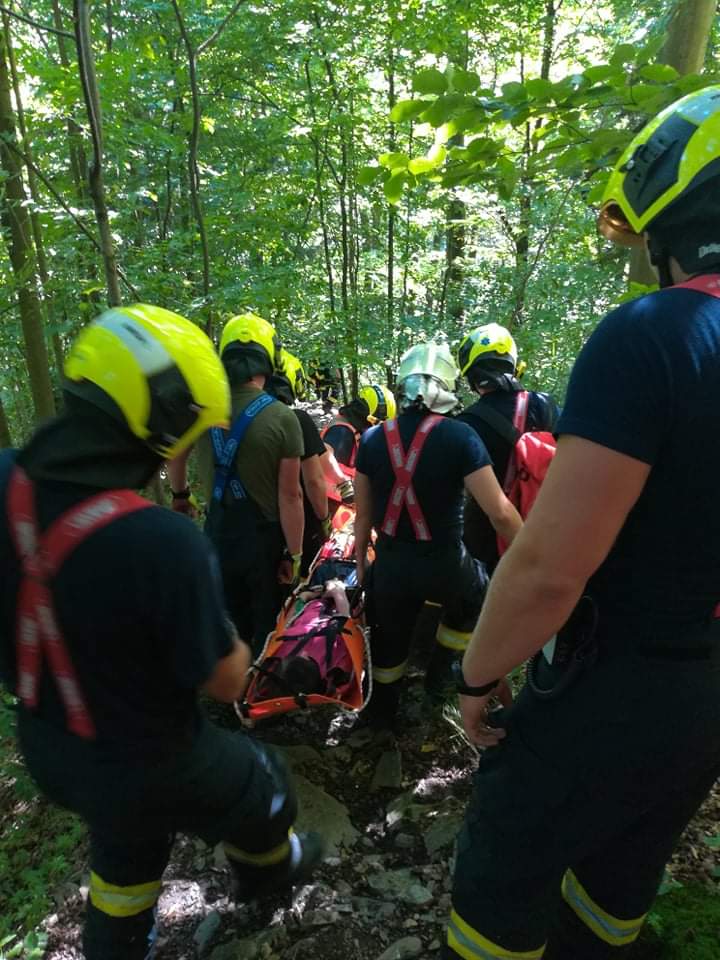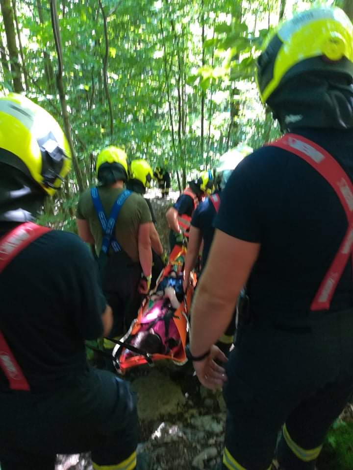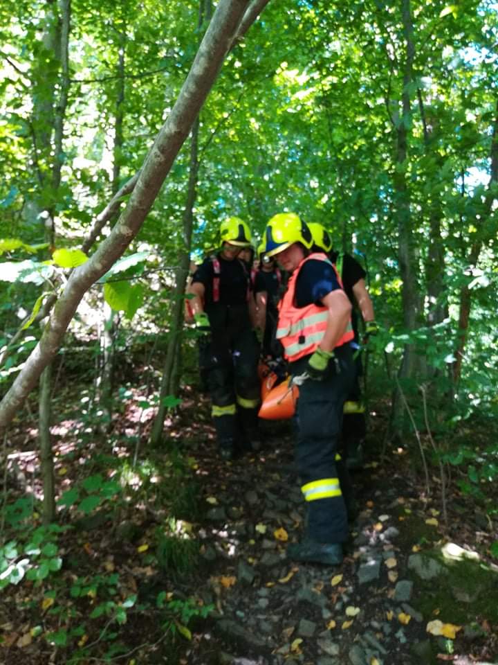 IMG-20210810-WA0018.jpgItransport zraněné osoby z nepřístupného terénu Paní měla zranění na dolní končetině, zcela imobilizována. Hasiči k místu dorazili se čtyřkolkou, i tak ji v prostředí nebylo možné zcela využít, pouze k dopravě zásahového materiálu. Návazně následovala pomoc transportem pomocí nosítek. Jednalo se fyzicky náročný zásah, postup transportu vedl strmou, úzkou turistickou stezkou až k vozidlu posádky zdravotníků ZZS.
