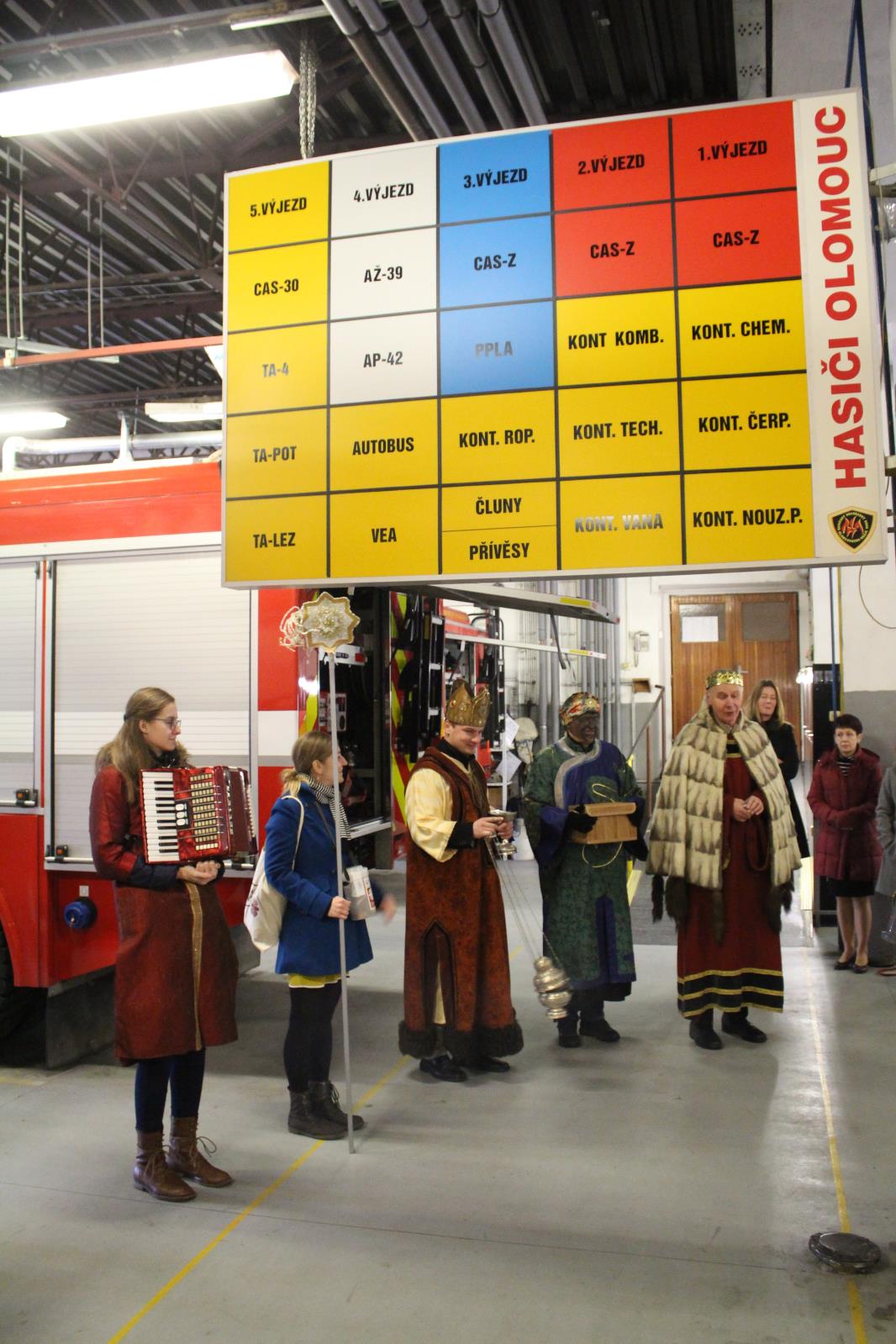 Kostýmy Melichara, Kašpara a Baltazara oblékli představitelé olomoucké Charity. Koledovat přišli za tónů harmoniky a vůně kadidla. Koledníky přivítaly na krajském ředitelství HZS Olomouckého kraje a centrální požární stanici v Olomouci asi dvě desítky příslušníků a občanských zaměstnanců, kteří přispěli do jejich kasičky.