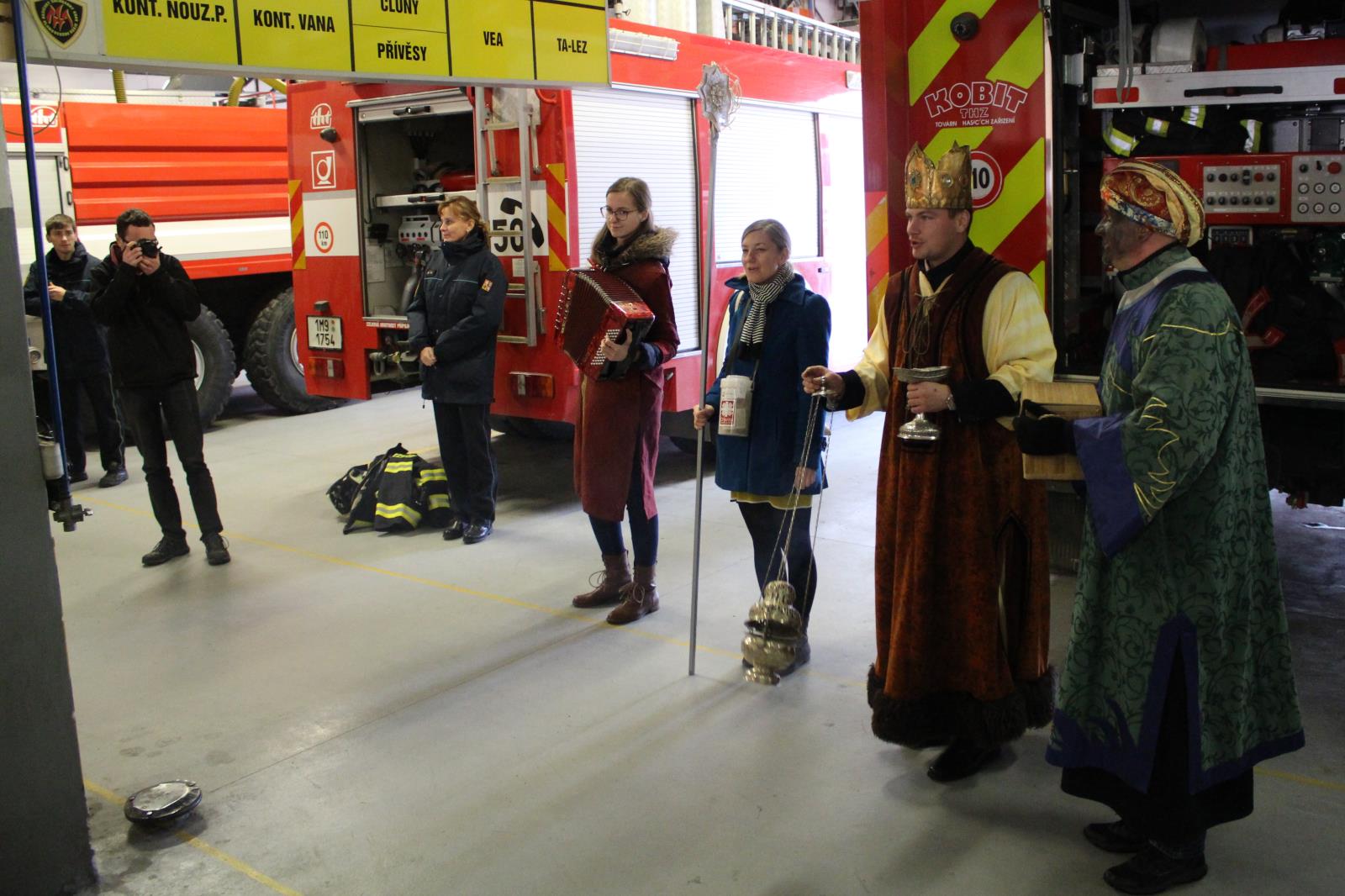 Kromě profesionálních hasičů zamířili tři zpívající králové dnes také na krajský úřad, vojenské velitelství, ředitelství Policie ČR nebo do nemocnice.