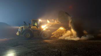 Další noční výjezd směřoval k rozsáhlému požáru štěpky na Kozlově. Jednalo se o událost, která vyžadovala dlouhodobý zásah. Hasiči museli za pomoci těžké techniky rozhrnovat velké hromady materiálu, aby se dostali k ohniskům hoření.
