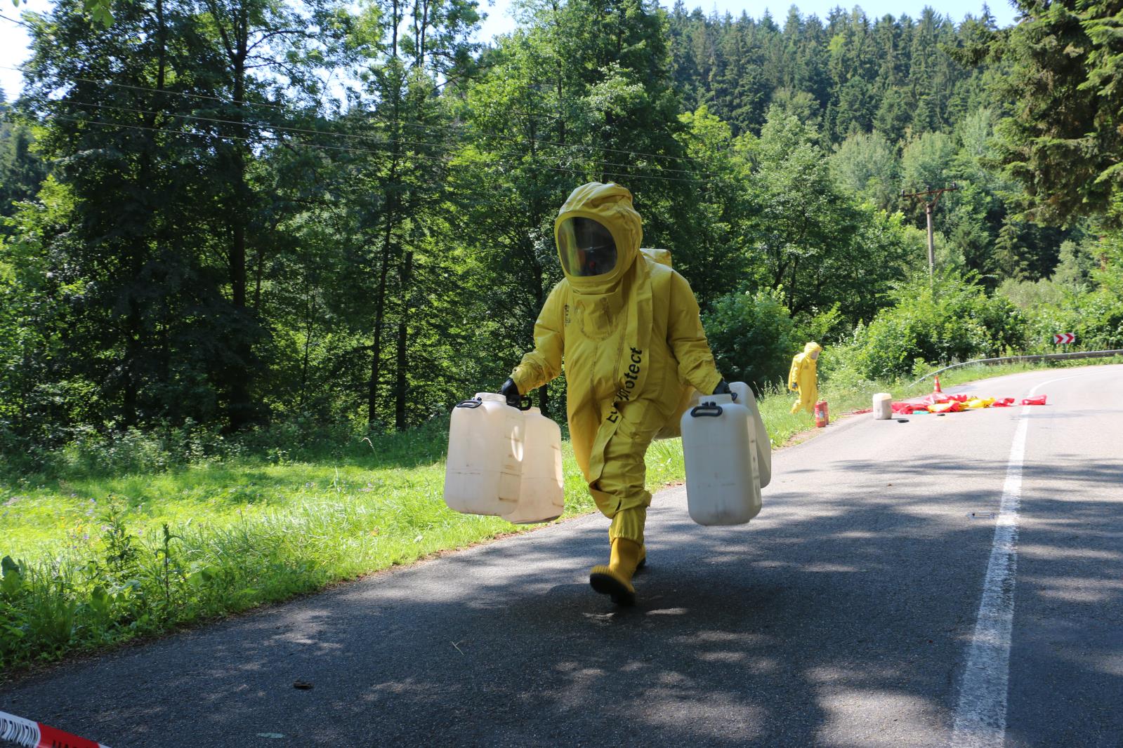 Hasiči po svém příjezdu provedli zamezení úniku nebezpečné látky a likvidaci uniklé části pomocí sorbentu, jednalo se o množství které bezprostředně neohrožovalo okolí a zasažení zeminy na místě hasiči konzultovali ze zástupci životního prostředí. Po příjezdu náhradního vozidla pro přepravu s novou nádrží jednotka provedla přečerpání nebezpečné látky a místo události bylo krátce před 17 hodinou předáno Policii ČR.