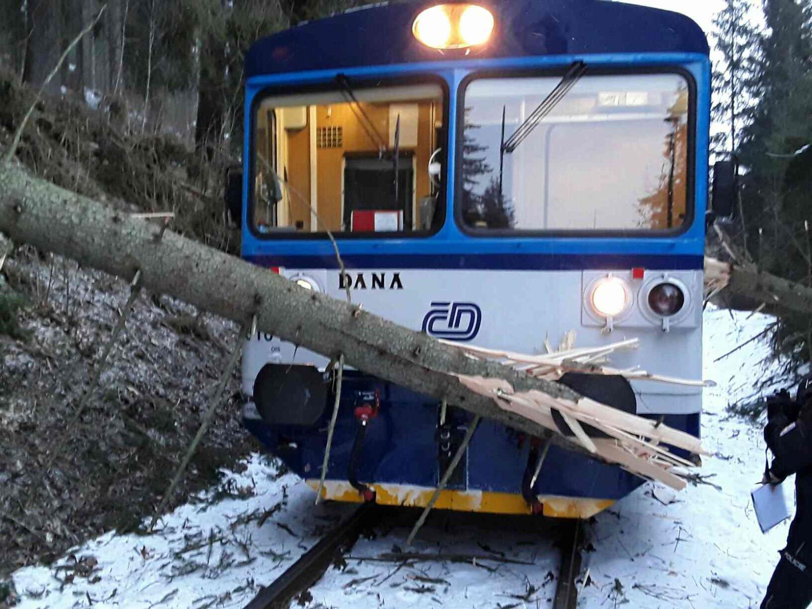V Chrasticích na Šumperku vlak narazil do stromu.