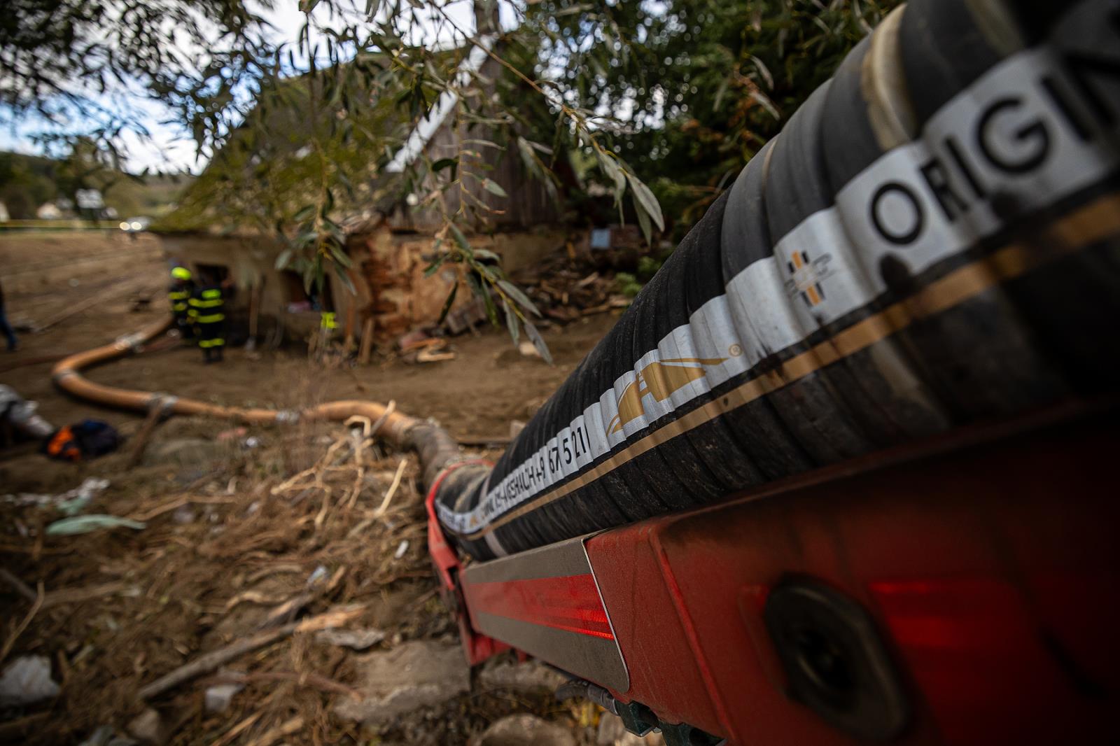 Využíváme také sací bagr, který pomáhá ze sklepů odstranit velké množství naplaveného bahna. Odčerpáváme zaplavené studny.