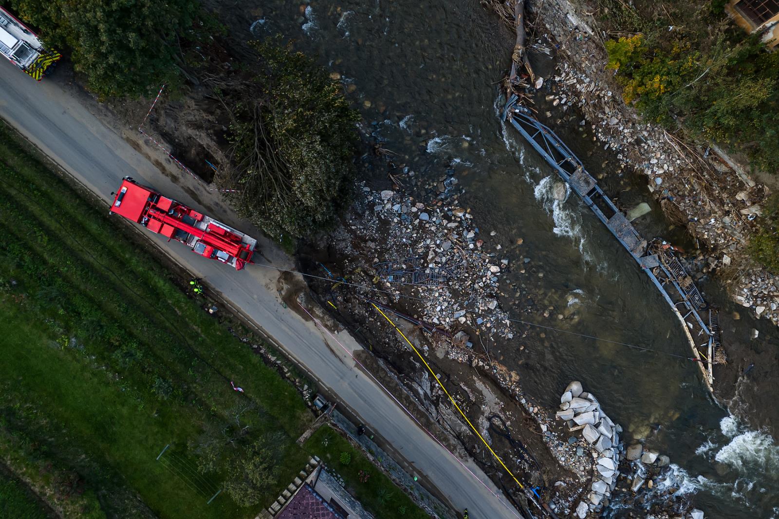 Od počátku povodní využíváme v území bezpilotní letouny. V první fázi nám drony pomáhaly dodávat data potřebná k řízení zásahu i k vyhledávání lidí při jejich záchraně. Nyní byl na Jesenicko vyslán speciálně sestavený odřad dronové služby HZS ČR, který bude pracovat na tvorbě ortofotomap a 3D modelu povodní zasaženého území, což zužitkují místní samosprávy a štáby krizového řízení.