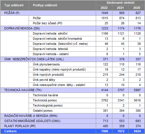 Více výjezdů jsme zaznamenali i v případě dopravních nehod. Počet dopravních nehod, které si vyžádaly zásah hasičů, se loni vyšplhal k číslu 1 233. Nejvíce událostí evidujeme na pozemních komunikacích, ale řešili jsme také 46 kolizí na železnici a dvě letecké nehody. Zásahy u úniků nebezpečných látek jsou srovnatelné jako v roce 2021.