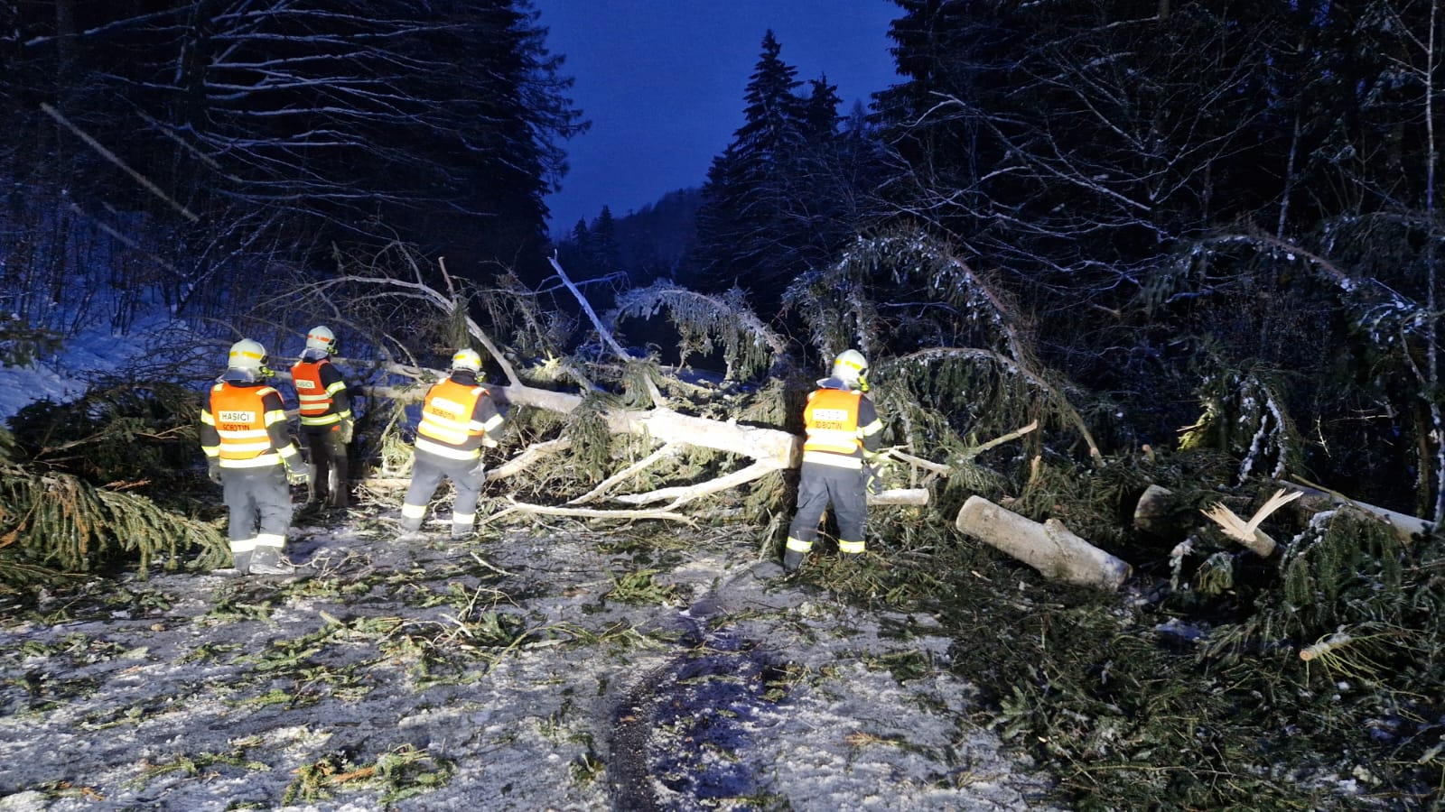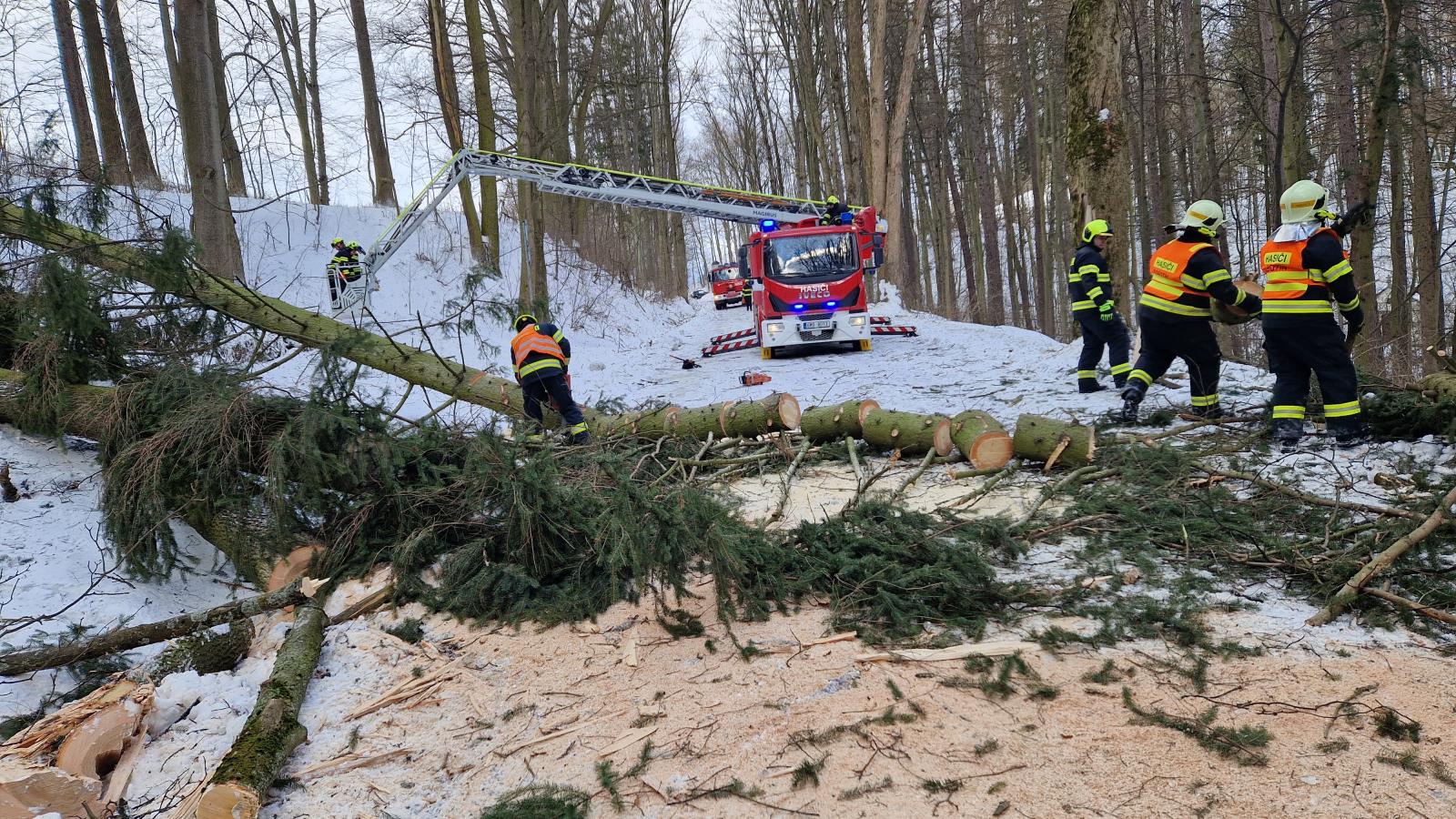 Převážně jsme zasahovali u popadaných stromů na komunikacích či v profilu železniční tratě. Také jsme je odstraňovali ze střech rodinných domů či drátů elektrického vedení, kde jsme spolupracovali s pohotovostními službami energetiků. Zajišťovali jsme také utržené části střech. Řešili jsme rovněž dopravní nehody a neprůjezdnou silnici mezi Jívovou a Hraničnými Petrovicemi, kde PČR komunikaci kvůli závějím uzavřela. Uvázlo tam 5 osobních automobilů a autobus.