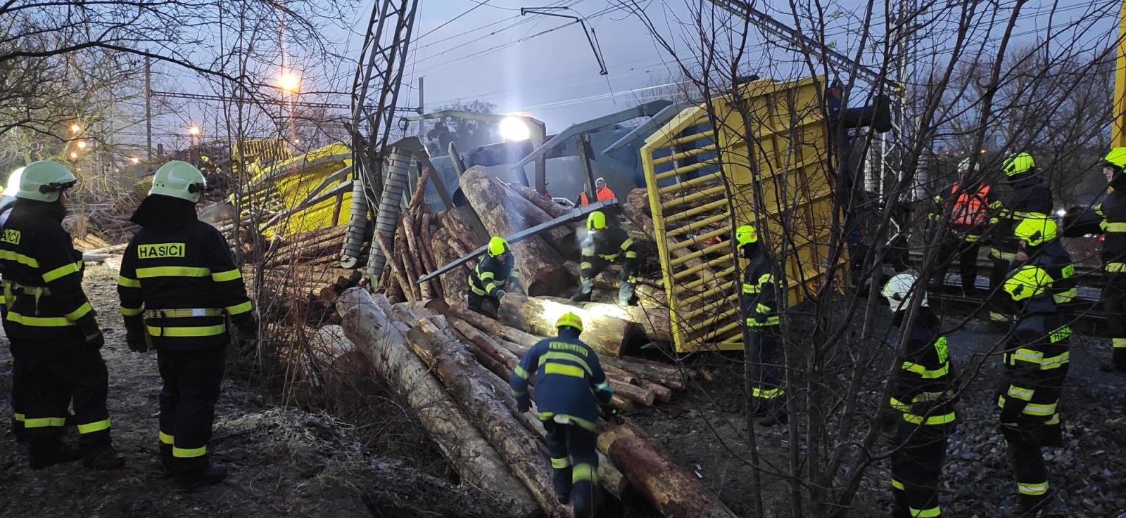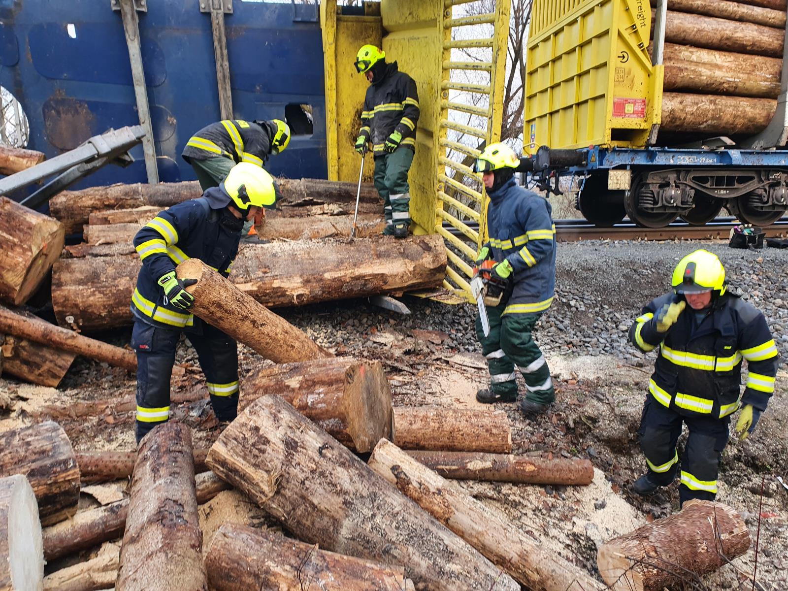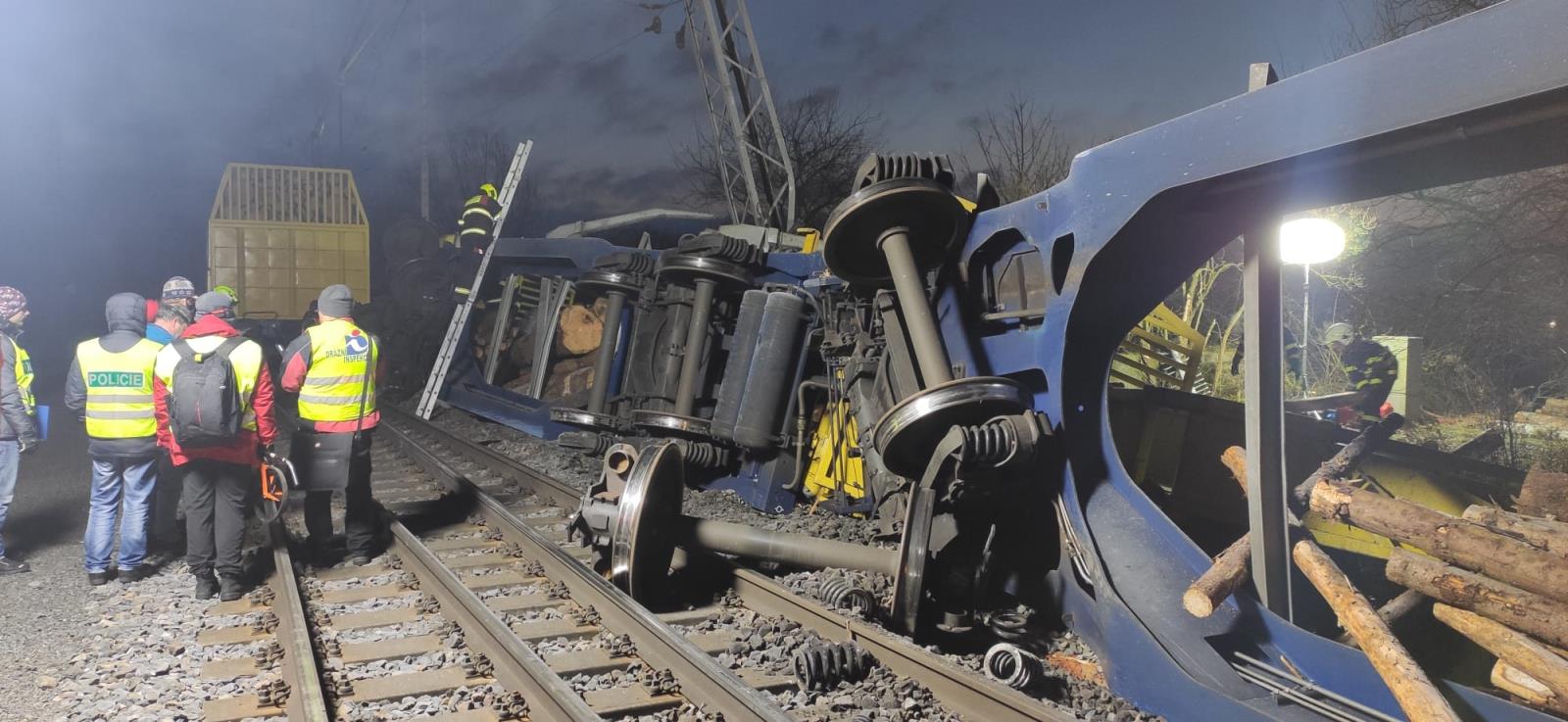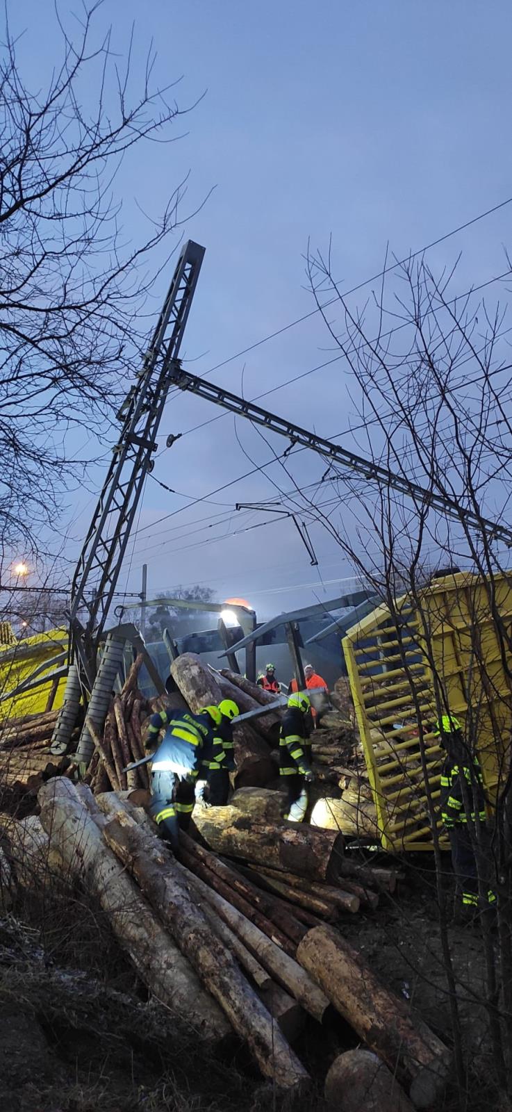 Vykolejily čtyři vagóny plně naložené dřevem, bylo poškozeno trakční vedení. Na místě dopoledne pracovalo sedm jednotek pod velením hasičů SŽ a odklízely vysypaný náklad. Hasiči řezali dřevo na menší kusy a odstraňovali z profilu trati ručně, protože nepřístupný a svažitý terén neumožňoval okamžité nasazení vhodné těžké techniky. Dopoledne byl pak nasazen vyprošťovací tank SŽ, který pomáhal s odstraněním poškozených vagónů. Probíhá oprava trakčního vedení. Předpoklad uzavření trati je podle velitele zásahu až do sobotních brzkých ranních hodin. Škoda se podle předběžných odhadů vyšplhá zhruba k 21 milionům korun. Nikdo nebyl zraněn.