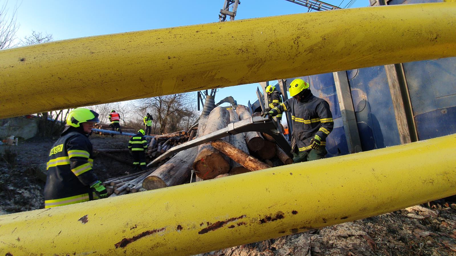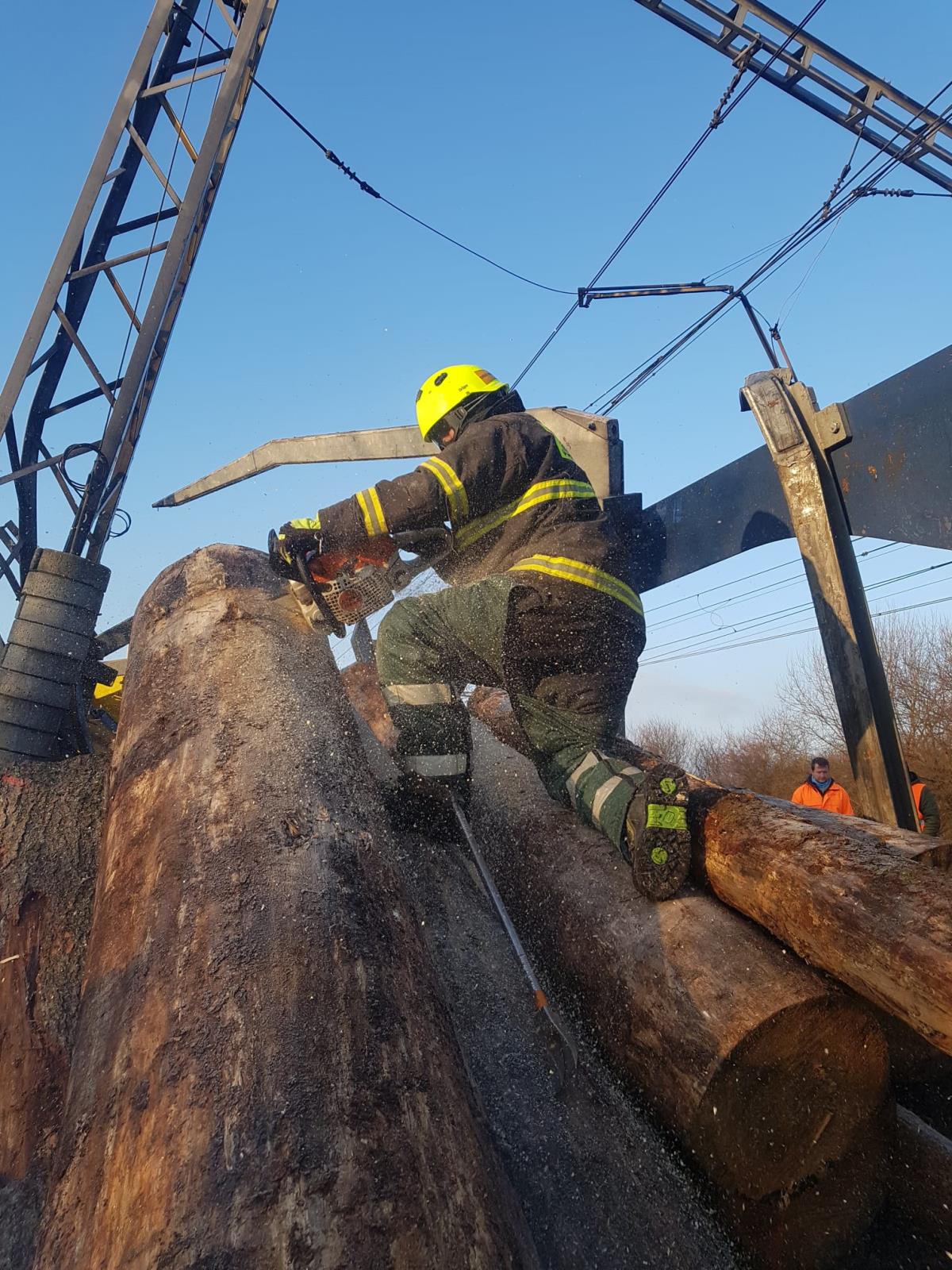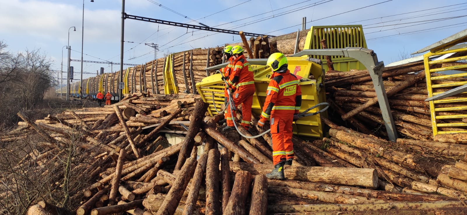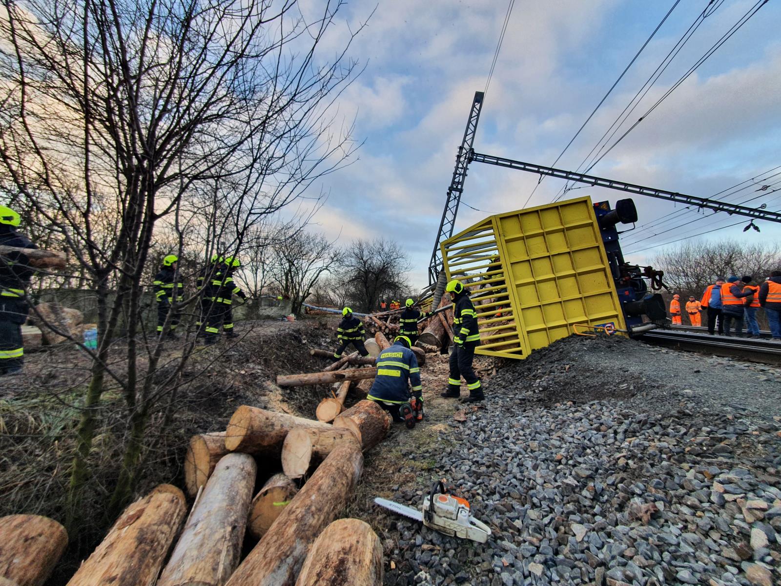 Vykolejily čtyři vagóny plně naložené dřevem, bylo poškozeno trakční vedení. Na místě dopoledne pracovalo sedm jednotek pod velením hasičů SŽ a odklízely vysypaný náklad. Hasiči řezali dřevo na menší kusy a odstraňovali z profilu trati ručně, protože nepřístupný a svažitý terén neumožňoval okamžité nasazení vhodné těžké techniky. Dopoledne byl pak nasazen vyprošťovací tank SŽ, který pomáhal s odstraněním poškozených vagónů. Probíhá oprava trakčního vedení. Předpoklad uzavření trati je podle velitele zásahu až do sobotních brzkých ranních hodin. Škoda se podle předběžných odhadů vyšplhá zhruba k 21 milionům korun. Nikdo nebyl zraněn.