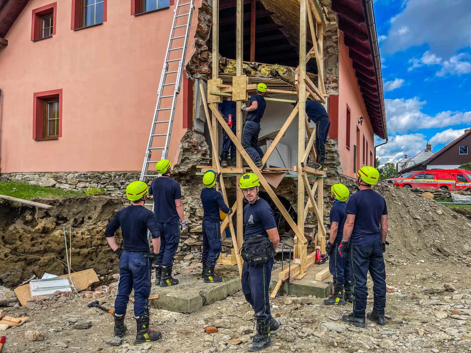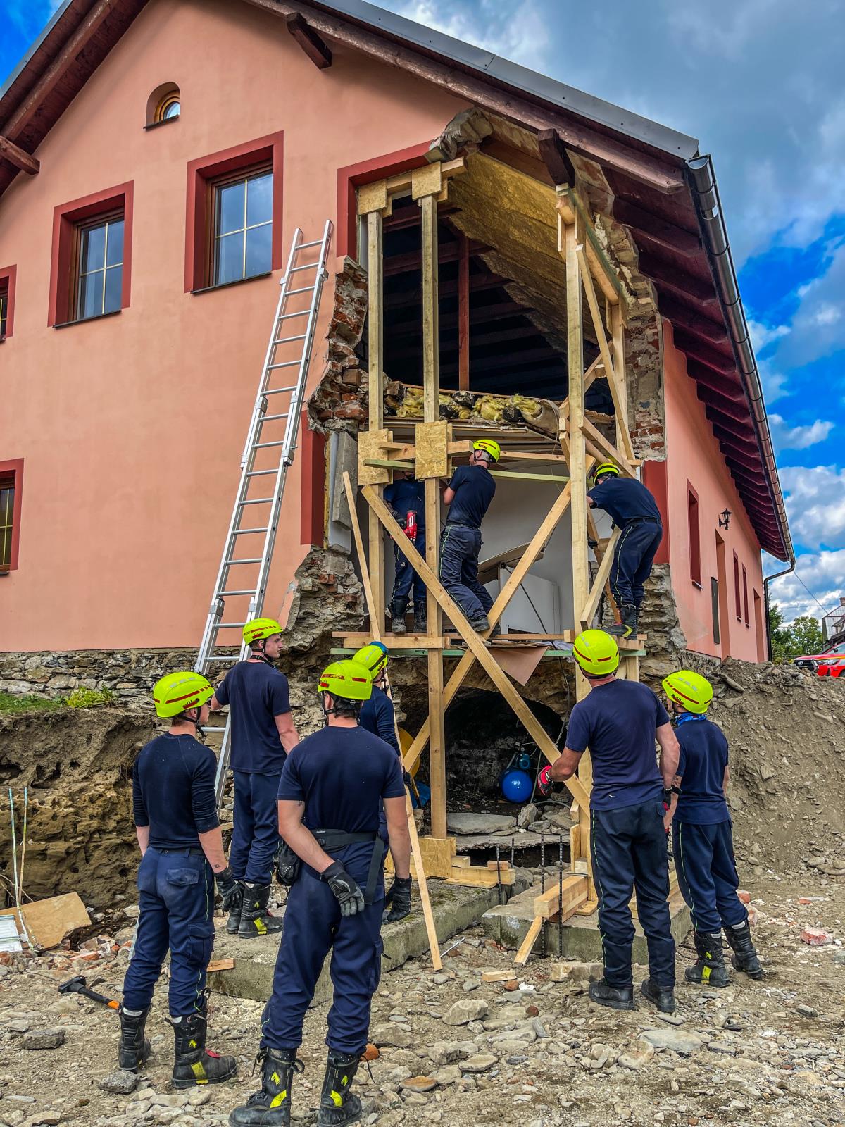Jde o odbornou činnost, na které pracují speciálně vycvičené týmy. V nejvíce zasažených obcích se již podařilo takto zajistit víc než 10 objektů. Jelikož jde většinou o nebezpečný zásah, hlídají narušené konstrukce inklinometry, což jsou citlivá čidla, která se instalují přímo na stavbu a hlásí na dálku pohyb jednotlivých nosných prvků. Chrání tak naše hasiče pro případ, kdy by hrozilo během prací zřícení stavby.