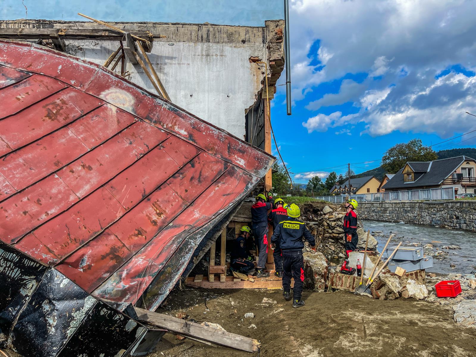 Spolu se Záchranným útvarem HZS ČR odstraňujeme nebezpečné stavy vzniklé narušením objektů, u kterých statik rozhodl o jejich stržení. Jedním z těchto objektů se stala trafostanice v Bělé pod Pradědem, jejíž konstrukce se po povodních nahnula tak, že znamenala riziko pro své okolí. O stržení staveb z důvodu bezpečnosti rozhoduje statik spolu se stavebním úřadem. Hasiči zajišťují technickou a odbornou stránku prací právě v součinnosti s kolegy ze záchranného útvaru, který disponuje speciální technikou.