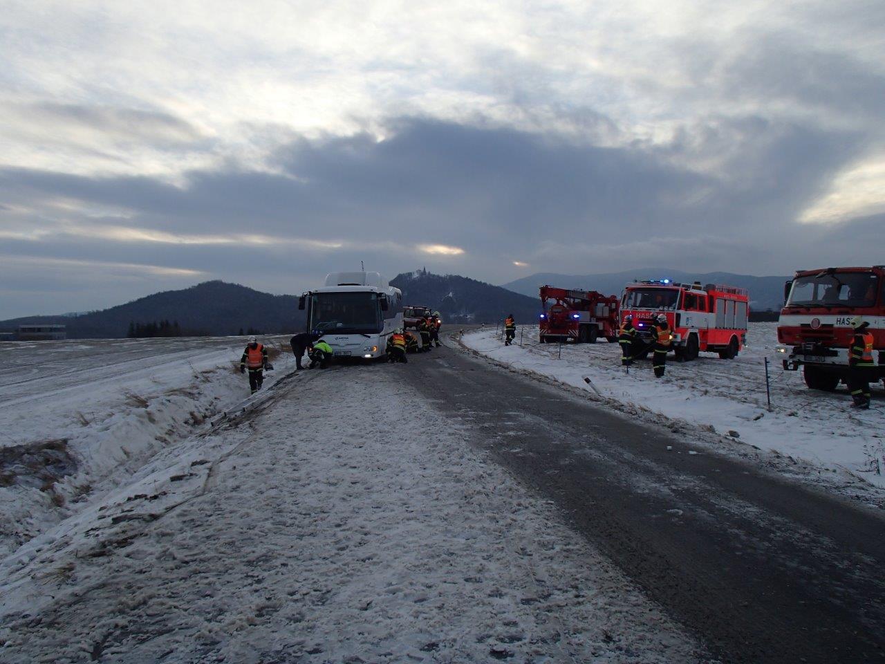 V pátek 13. ledna 2017 byla v 6:27 hodin oznámena na operační středisko HZS Olomouckého kraje dopravní nehoda autobusu v obci Skorošice.