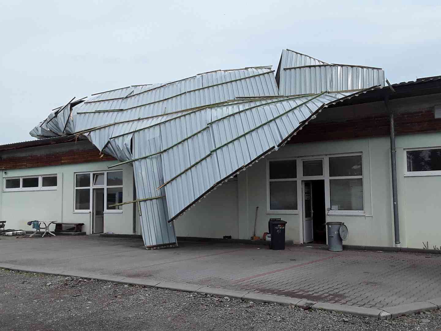 Poškozené střechy – v číslech v desítkách událostí na Prostějovsku, Olomoucku – utržené střechy po vichřici, poškozené střechy po krupobití.