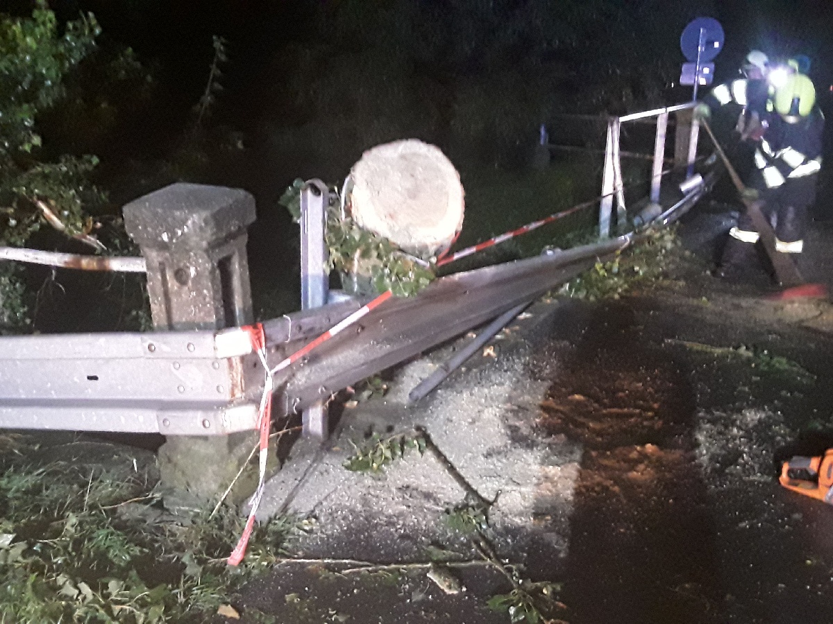Krátce po 20 hodině vyjela k první události jednotka profesionálních hasičů ze stanice Šumperk pro nutnost čerpání vody a odstranění naplavenin z polí. Hasiči na místě mimo pomoci obyvatelům zajistili pročištění kanálových vpustí, zbylou část musí místní řešit v následujících hodinách. Velmi silné bouřky doprovázel také silný či nárazový vítr, ten má za následek pádu několika stromu na Šumpersku a Olomoucku. Celkově evidujeme prozatím necelou desítku těchto událostí. Například v Nákle u místního vodního díla došlo k pádu několika menších stromů na zaparkovaná vozidla a karavany. Naštěstí zde k žádnému zranění nedošlo, pouze k materiálním škodám.