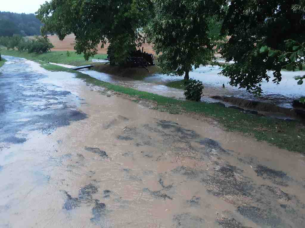 Jesenec (Olomoucký) – voda z polí ohrožovala objekty, zatopené příkop s hrozícím přelitím