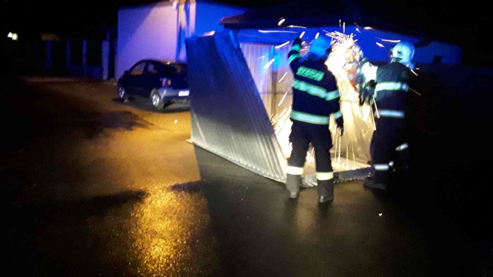 Uvolněná plechová garáž. |