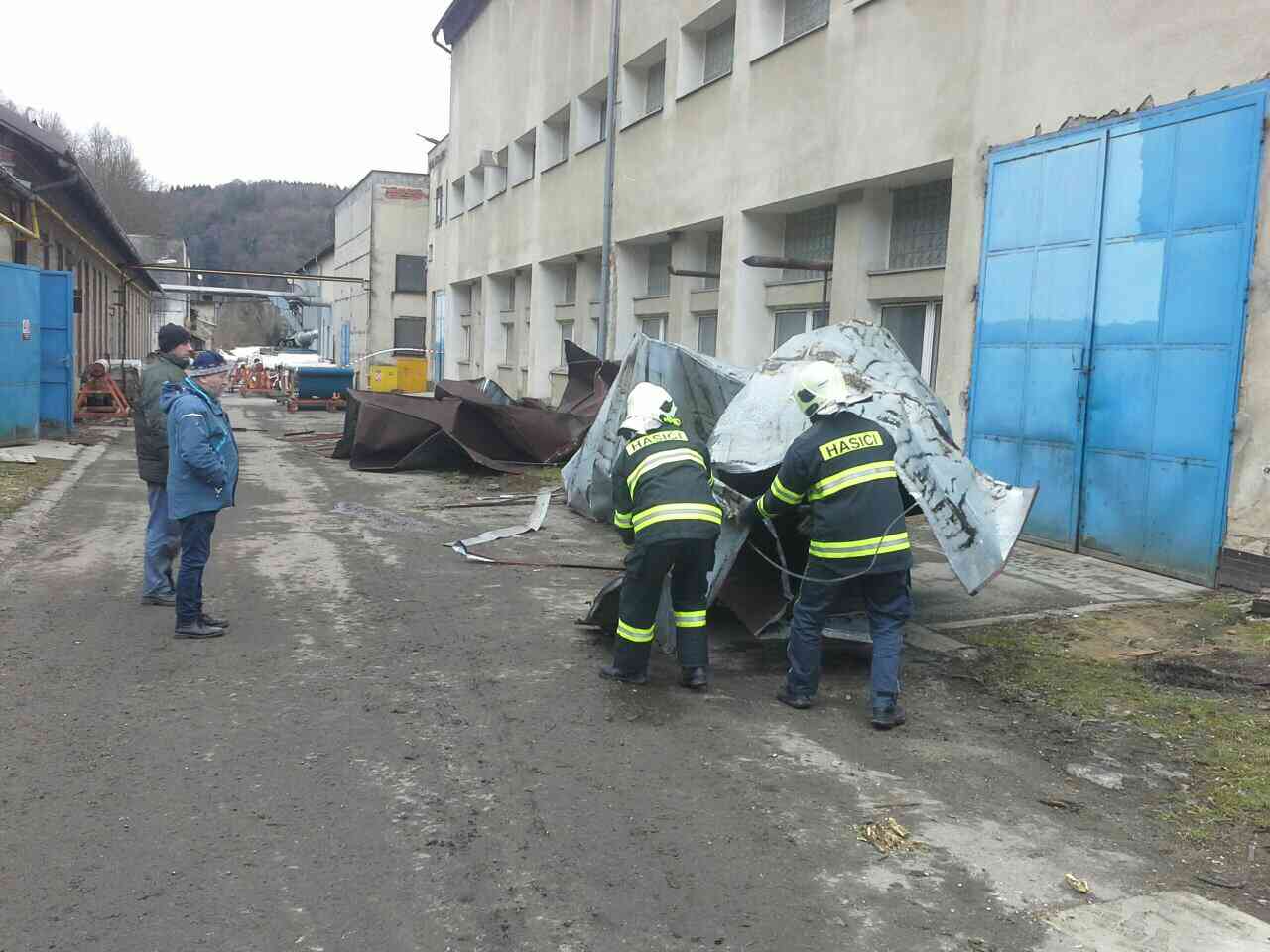 V Oskavě došlo k pádu plechové střechy o rozměrech zhruba 4 x 15 metrů. (viz foto), podobný problém pak hasiči řešili také dvakrát na Jesenicku a to v Kobylá nad Vidnavkou a Zlaté Hory (viz fotografie). Přímo v Jeseníku hasiči řešili problém s uvolněním plechového obalu pouliční lampy. U Mladče na Olomoucku spadl strom na projíždějící vozidlo, došlo ke škodě na vozidle, naštěstí vše bez zranění.