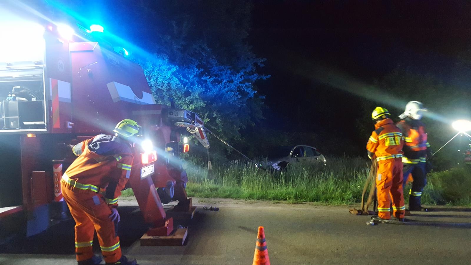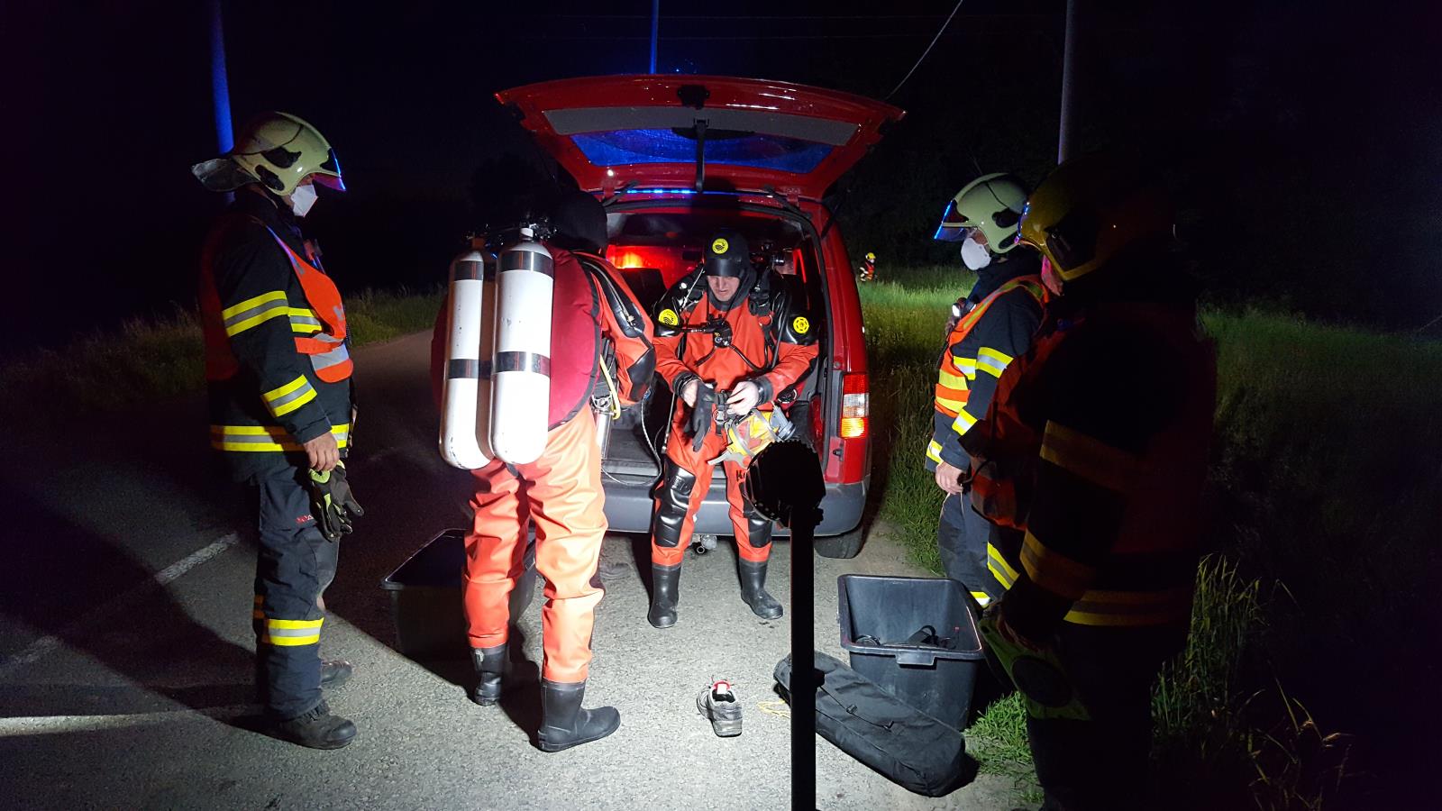 Z automobilu se dostali svépomocí střešním oknem. Při příjezdu našich jednotek tak už byli mimo nebezpečí. Jeden z nich se zranil, takže jsme mu poskytli prvotní předlékařskou péči a předali jsme jej do péče zdravotnické záchranné služby.