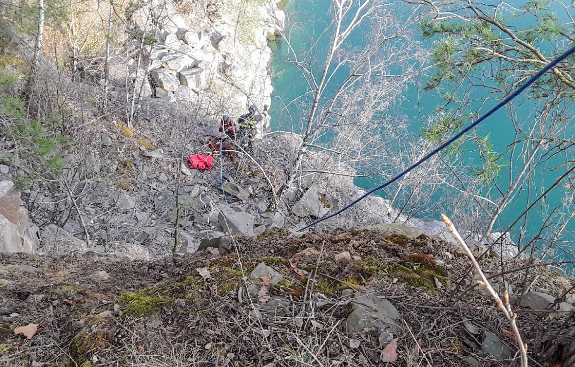 Záchrana pejska z hloubky, sklouzl do 10 metrů hlubokého mezipatra, Výkleky - Přerovsko