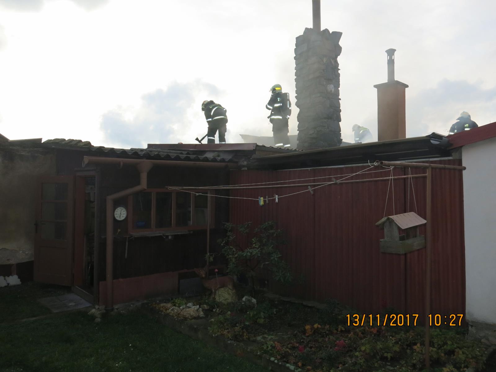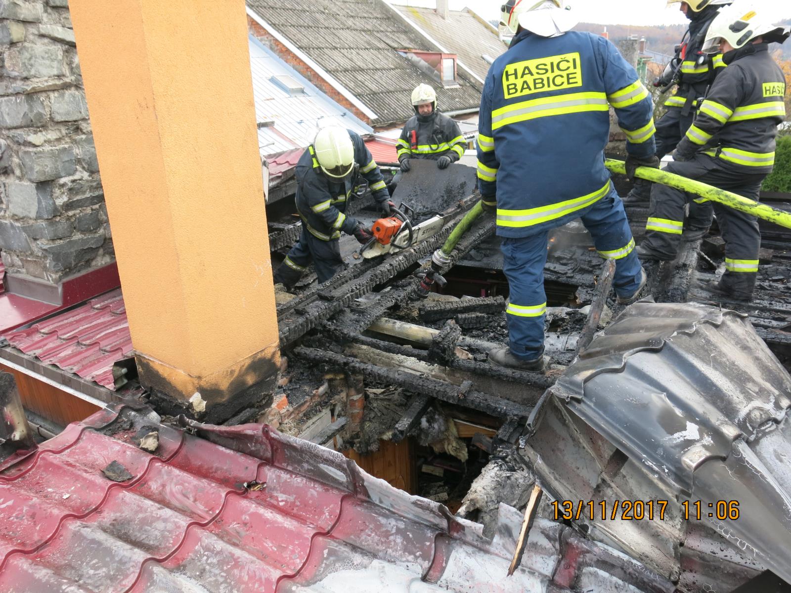 f.jpgČtyři jednotky hasičů Olomouckého kraje se v dopoledních hodinách neděle 12.listopadu 2017 podílely na likvidaci požáru po zahoření v okolí komína s následným rozšířením na střechu objektu ve Šternberku. Došlo k zahoření pohledu a plameny dále velmi rychle pohlcovaly střechu rodinného domku.