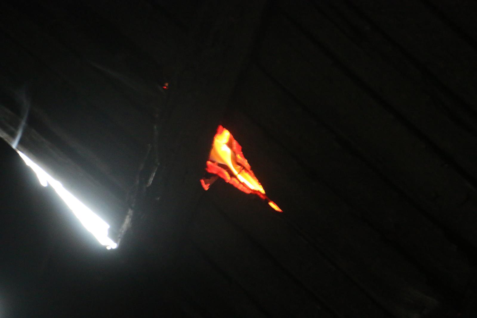 Zahoření střechy rodinného domku při opravě.