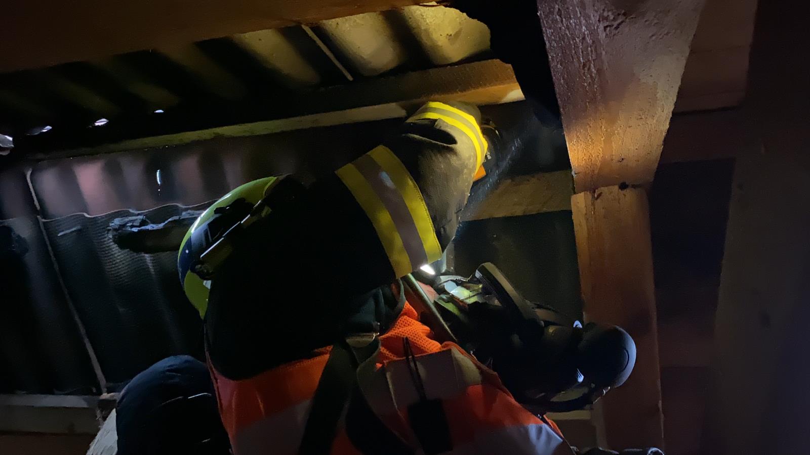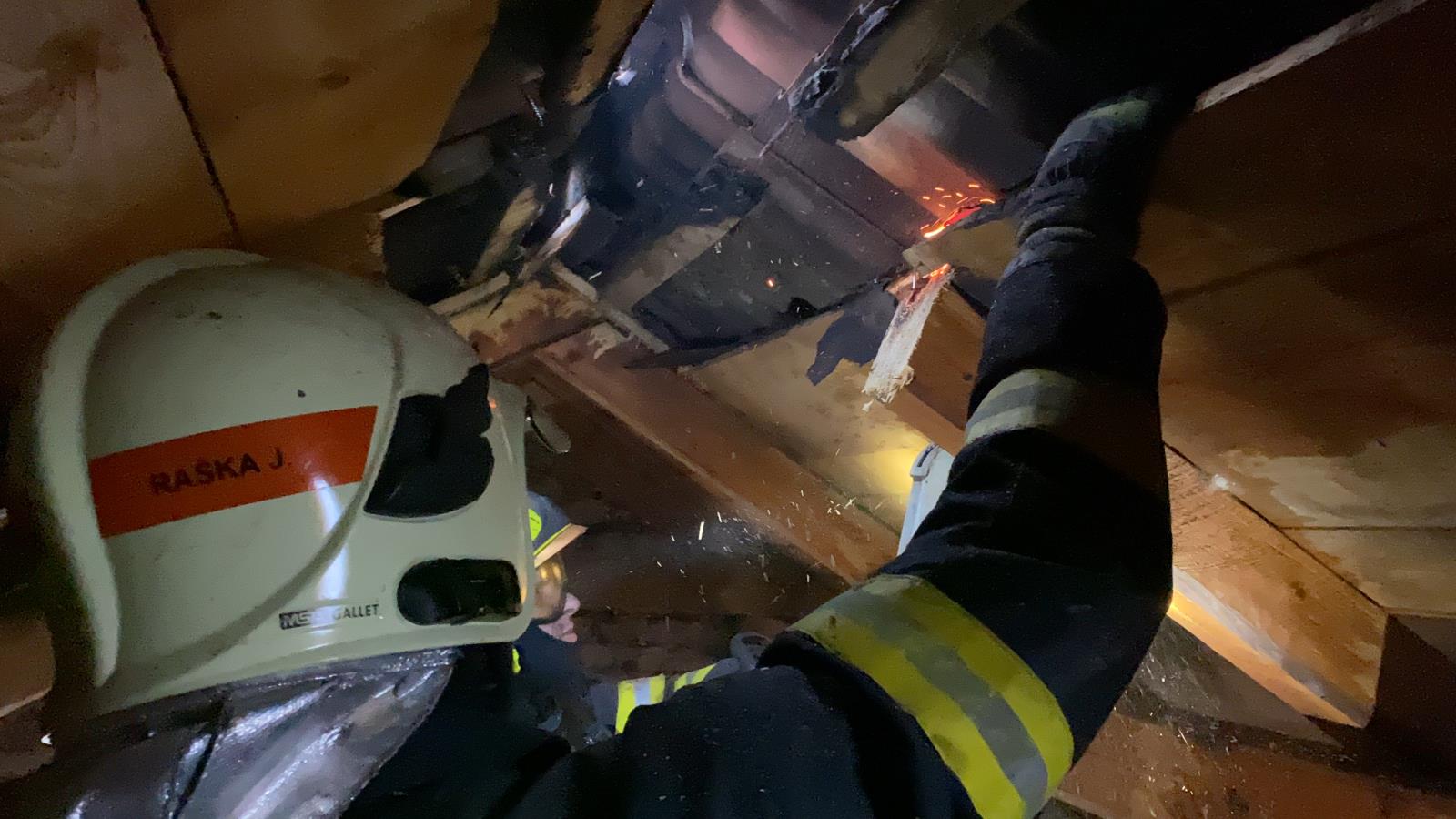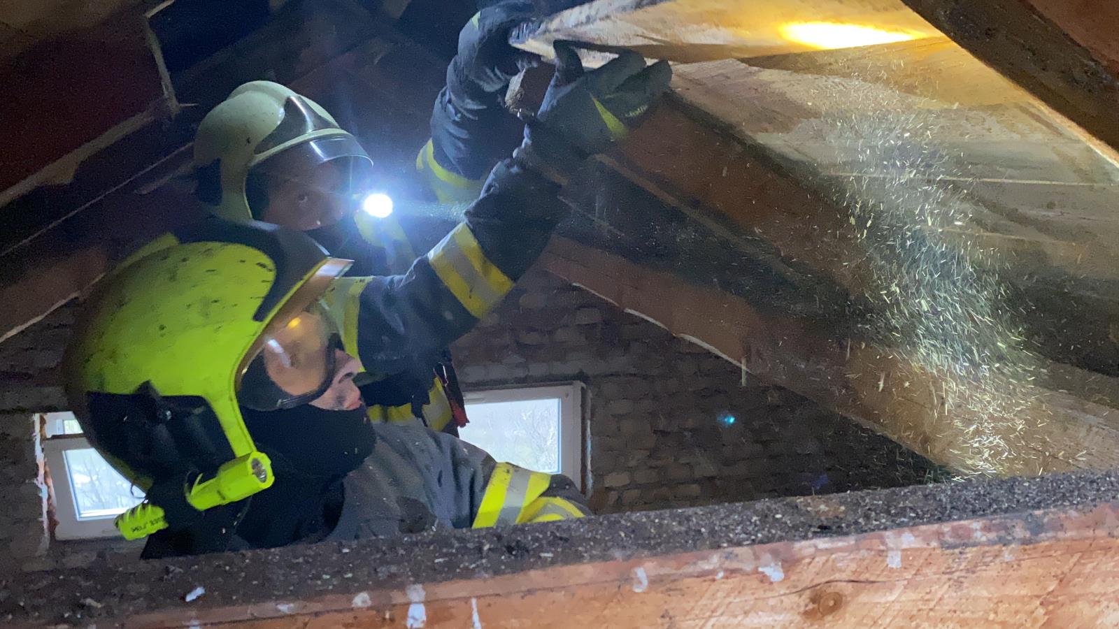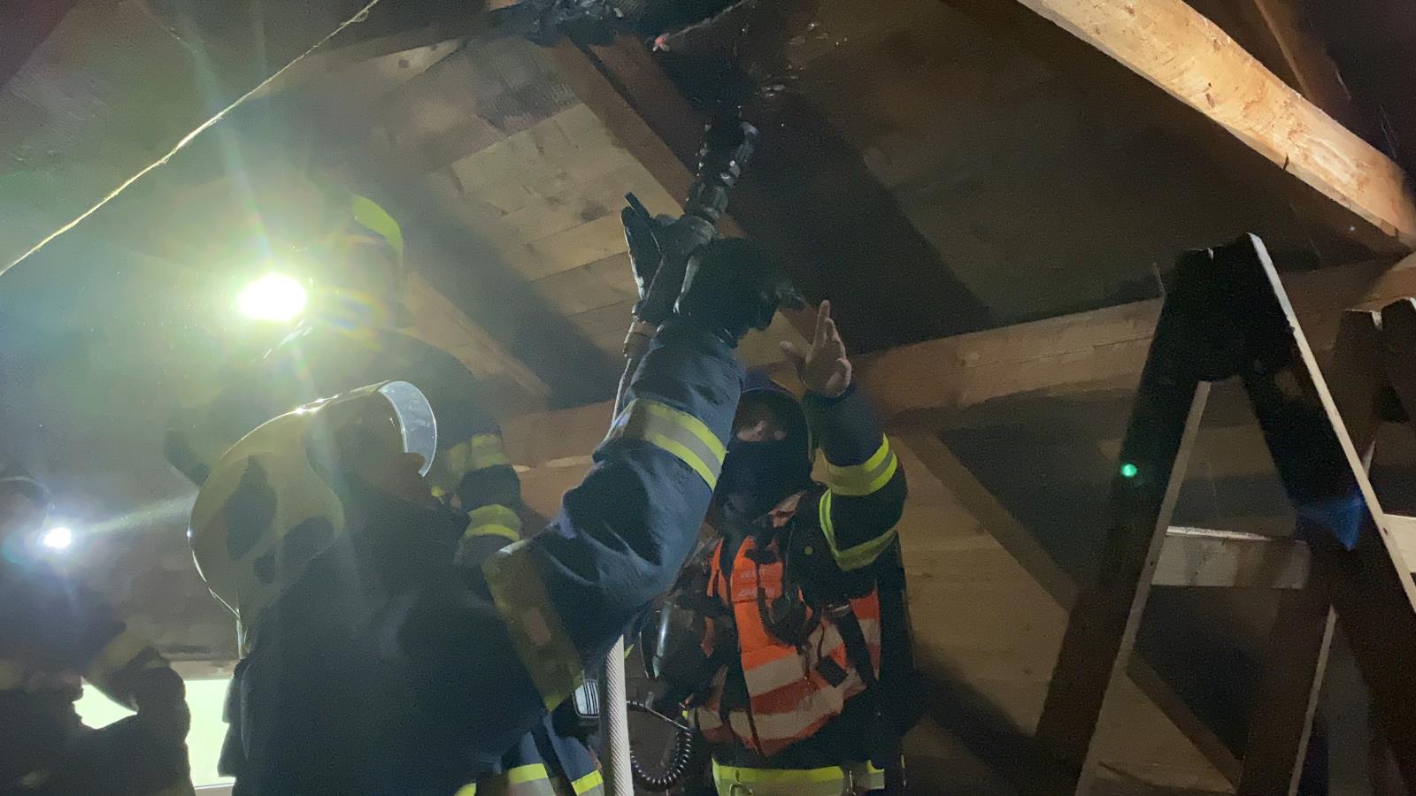 Požár byl tak v krátkosti ohlášen cestou hovoru na tísňovou linku hasičů a první jednotky zde byly rovněž do několika minut. Hasiči pomocí termokamery i vizuální kontrolou odkryli nebezpečná místa vykazující známky hoření, menší ohniska poté dohasili. V navazujícím čase provedli kontrolu také pomocí výškové techniky a v závěru střechu provizorně plachtou zakryli.